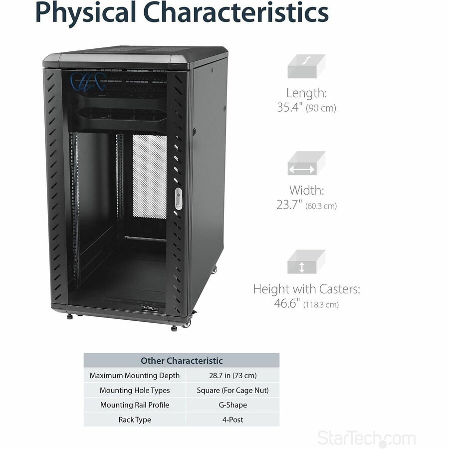 StarTech.com 4-Post 22U Server Rack Cabinet, 19" Data Rack Cabinet for Computer / IT Equipment, Home Network Rack, Half Height Server Rack