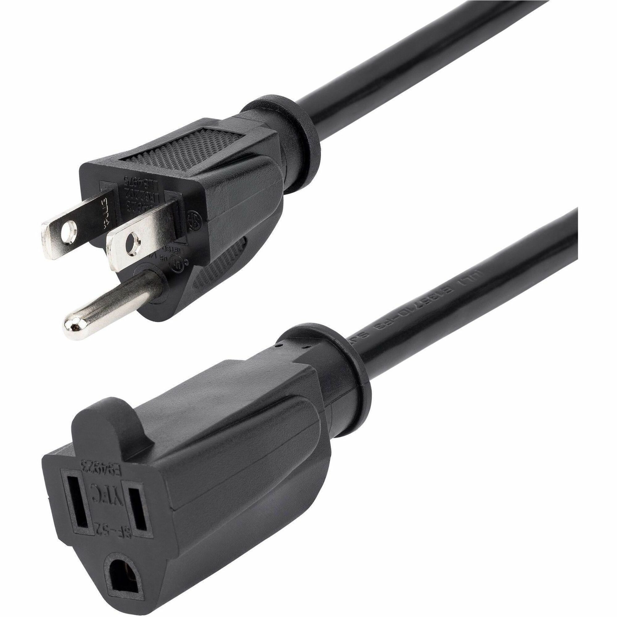 StarTech.com 10ft (3m) Power Extension Cord, NEMA5-15R to NEMA5-15P Black Extension Cord, 13A 125V, 16AWG, Computer Power Extension Cable