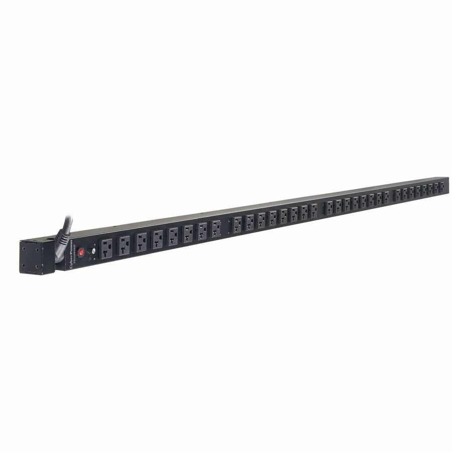 The CyberPower PDU20BV32F, a 32-outlet (front), 0U vertical rackmount basic power distribution unit (PDU), provides 100 – 125 V 20A output. It distributes power to 32 NEMA 5-20R receptacles from a single NEMA 5-20P plug with unfiltered electrical pass-through. Designed for datacenters and other electrically demanding applications, the PDU20BV32F has rugged, industrial-grade metal housing and a 10-foot AC power cord. It supports vertical, horizontal, and wall mount installation, includes a cord retention tray, and is ETL/RoHS certified. A limited lifetime warrantycovers defects in materials and workmanship in the product under normal use and conditions.