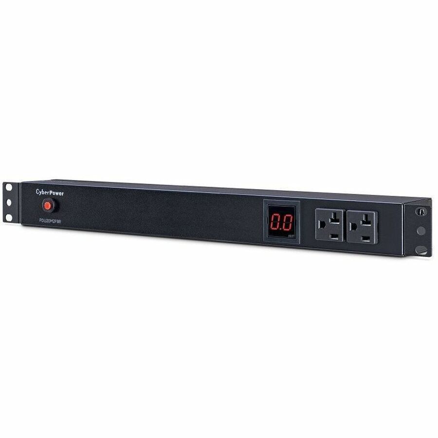 | Marketing Information | The CyberPower PDU20M2F8R, a 10-outlet (2 front, 8 rear), rackmount metered power distribution unit (PDU), provides 100 – 125 V 20A output. It distributes power to 10 NEMA 5-20R receptacles from a single NEMA 5-20P input with unfiltered electrical pass-through. The current draw for connected equipment is displayed in amps on the front LCD for real-time load monitoring. |