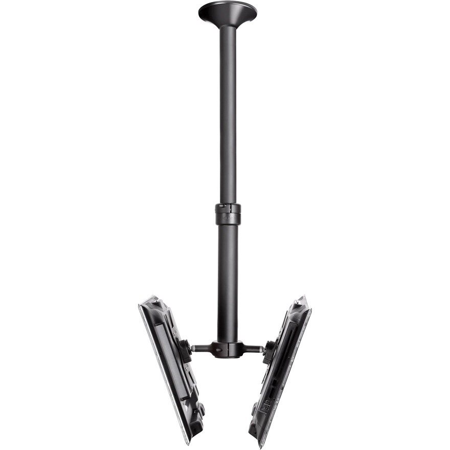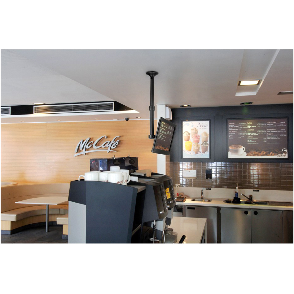 The TH-1040-CT is a versatile ceiling mount ideal for medium size (32in-46in) displays. It offers multiple adjustment points, including 360° rotation around the pole, tilt, pan and landscape/portrait display orientation. The telescopic pole enables easy display positioning at the desired height. Installation is simple, with built-in safety features to prevent the telescopic poles separating. Cables are run through the pole for a clean and professional finish. Two options are available: - TH-1040-CTS - pole adjustment length from 15.75in to 35.43in