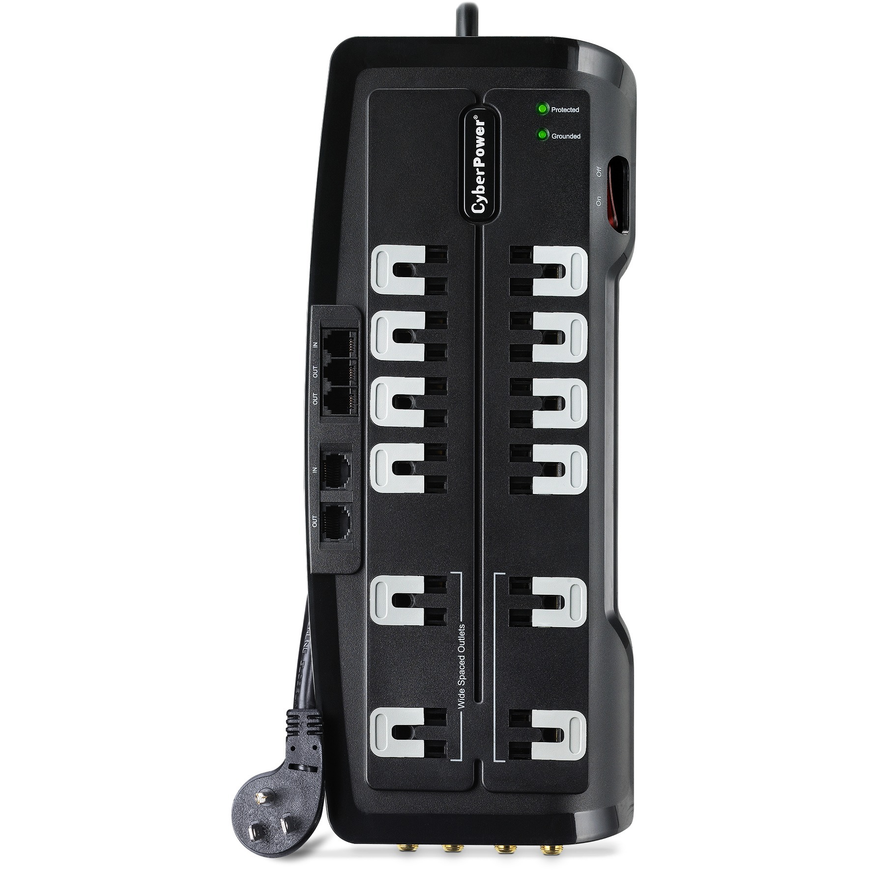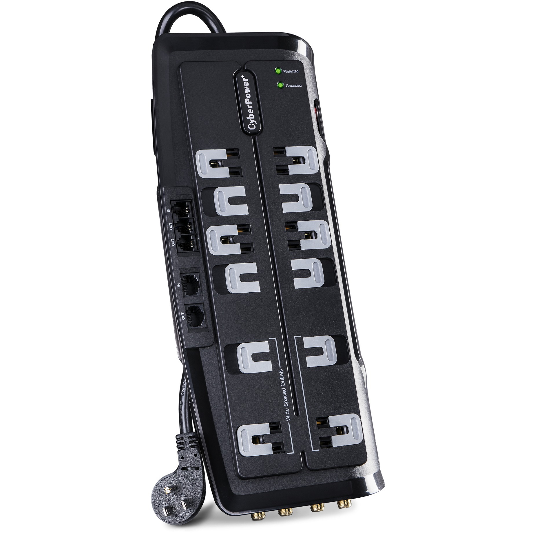 | Marketing Information | The CyberPower Home Theater Series CSHT1208TNC2 Surge Suppressor is ideal for home entertainment and Home-Office protection with 3150 joules, 12 outlets, and 8 FT cord. The surge suppressor provides protection for HDTVs, cable/satellite receivers, personal computers, cable/DSL modems, phones/fax, printers, and other electronics. The CSHT1208TNC2 features (12) outlets with (4) widely spaced outlets, MOV technology protects against line abnormalities and lightning surges, and EMI/RFI filter to block line noise. Data line protection is provided via RJ-45 & RJ-11 ports. The gold plated RJ-6 Coaxial connectors provide protection for cable/satellite TV receivers and broadband modems. The 8 Ft. power cord includes a right angle plug with a 45° off-set for installation in the tightest of environments. A Limited-Lifetime Warranty ensures the highest quality standards in design, assembly, material or workmanship and further protection is offered by a $500,000 Connected Equipment Guarantee.
