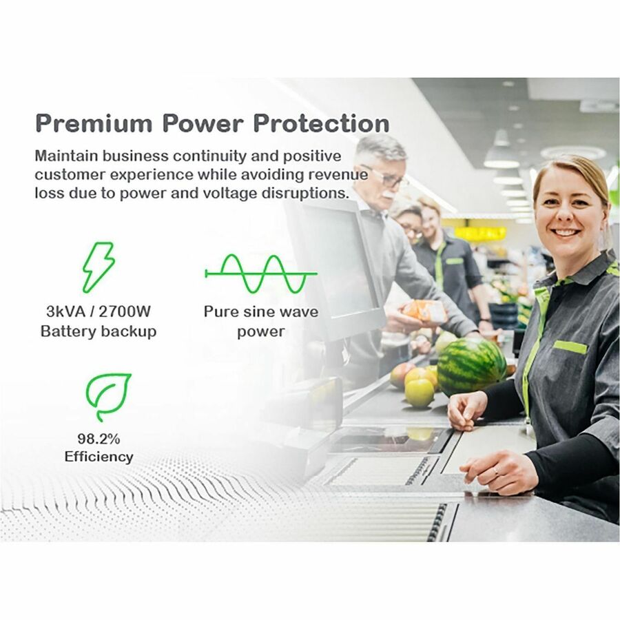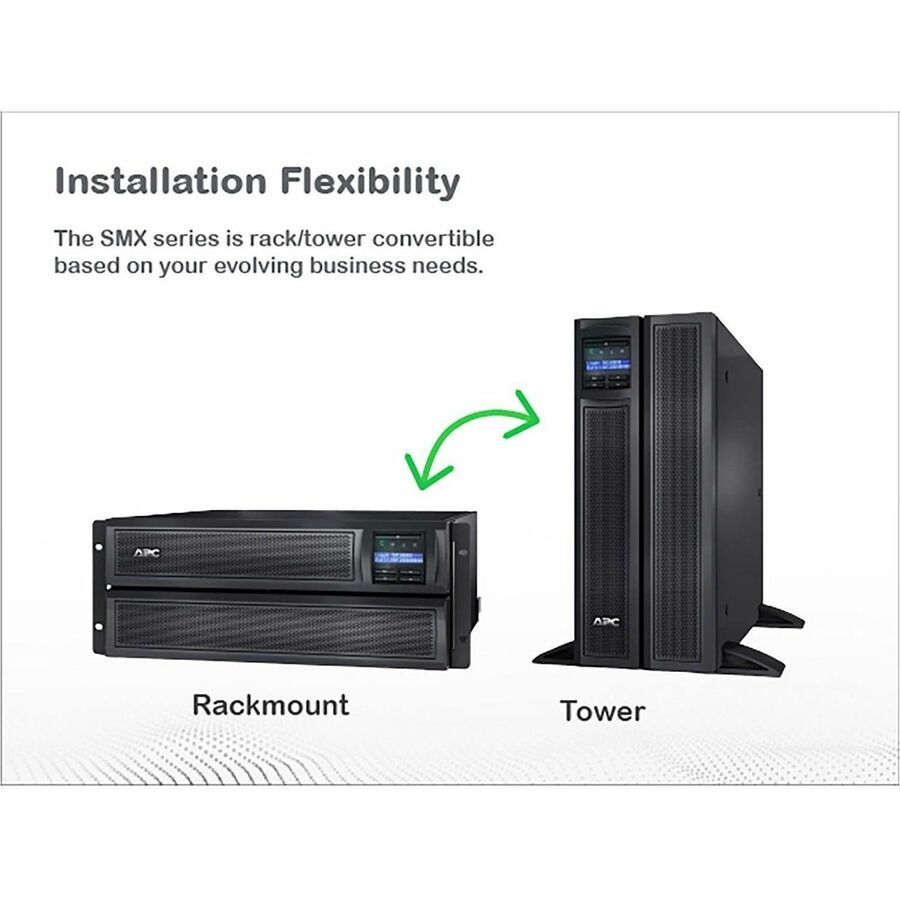 | Marketing Information | This APC Smart-UPS is designed for IT managers or network administrators to maintain business uptime, data transfer and continuity during prolonged power outages. The 3kVA line interactive 4U rack/tower UPS provides pure sine wave power to support critical electronics during power disruptions. The SMX comes with NEMA L6-20P input, 2x NEMA L6-20R, 4x IEC 320 C13 and 2x IEC 320 C19 outlets. The UPS has a SmartSlot for optional Network Management Card that enables graceful shutdown of physical servers, virtual machines & HCI Clusters via PowerChute Network Shutdown. This uninterrupted power supply can connect to EcoStruxure IT or third-party centralized management platforms. The SMX UPS has a 3-year warranty, and the built-in lead-acid battery has a 2-year warranty. This is compatible with dedicated user-replaceable battery, and the APC replacement battery cartridge helps restore UPS performance to the original specifications. The Smart-UPS comes with a pair of tower-mounting stabilizing feet and rack-mounting brackets. The 3 switchable outlet groups allow more granular management of the power supplied to your devices. The Emergency Power Off feature enables the UPS to remotely shutdown during emergencies. |
