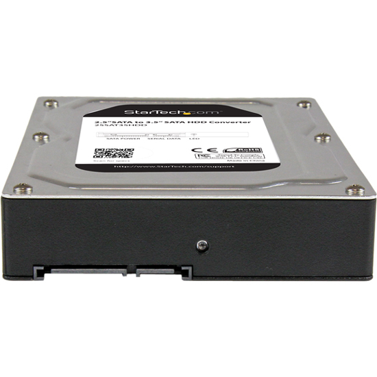 | Marketing Information | The 25SAT35HDD 2.5" to 3.5" hard drive adapter enclosure turns a 2.5" SATA hard drive (HDD) or solid state drive (SSD) into a 3.5" drive. The adapter enclosure lets you substitute a 3.5" hard drive for a 2.5" SSD/HDD in any application that would typically require a 3.5" drive, such as desktop chassis, backplane, or docking station. The enclosure has the same dimensions as a standard 3.5" hard drive, including mounting points, and SATA connector locations. With support for drives up to 12.5mm in height, and high-capacity SATA I/II/III drives (tested up to 1TB) this HDD adapter ensures compatibility with virtually any 2.5" SATA hard drive or solid state drive. The 25SAT35HDD is backed by a StarTech.com 2-year warranty and free lifetime technical support. |