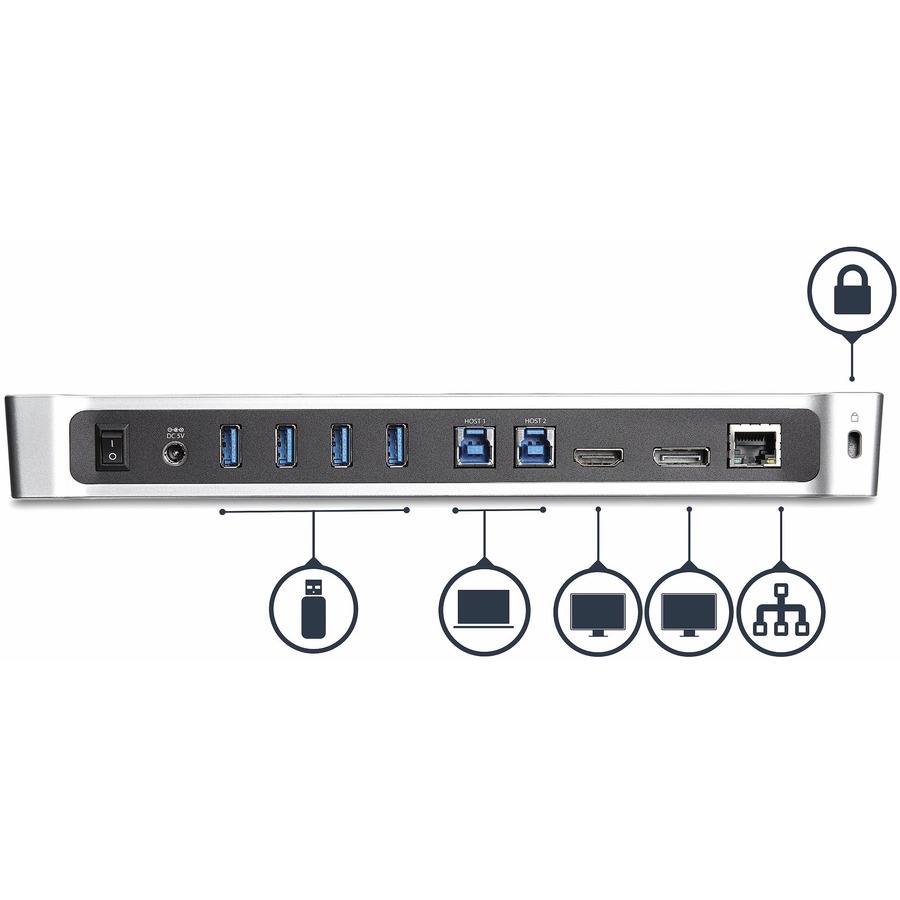 StarTech.com Dual-Monitor KVM USB 3.0 Docking Station for Two Laptops - 4K UHD - DisplayPort & HDMI - 5 USB Ports - File Sharing - USB Fast Charge