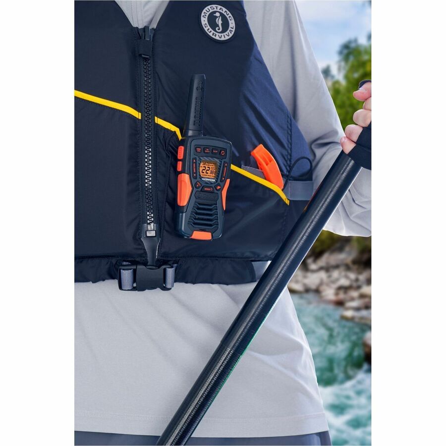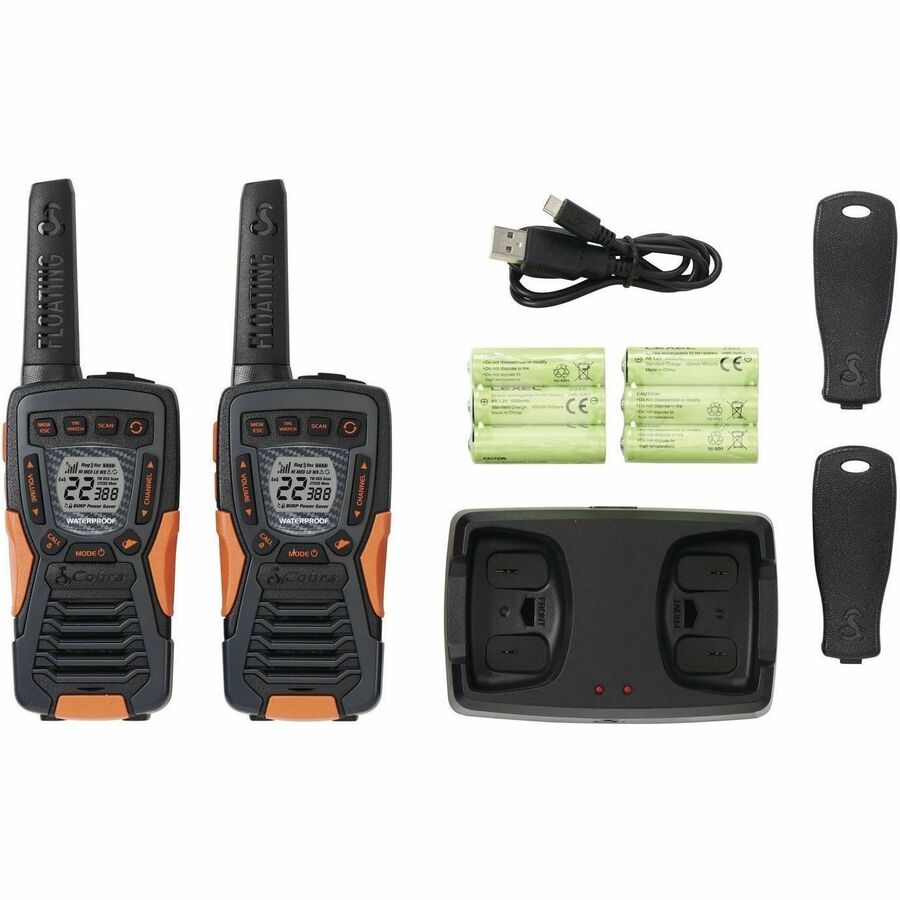22 Radio Channels - Upto 195360 ft (59545728 mm) - 121 Total Privacy Codes - NOAA Weather Radio, Voice Activated Transmission (VOX), Built-in Flashlight - Water Proof - AA - Nickel Metal Hydride (NiMH) - Black, Dark Blue, Orange - 2 Pack