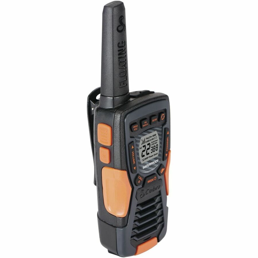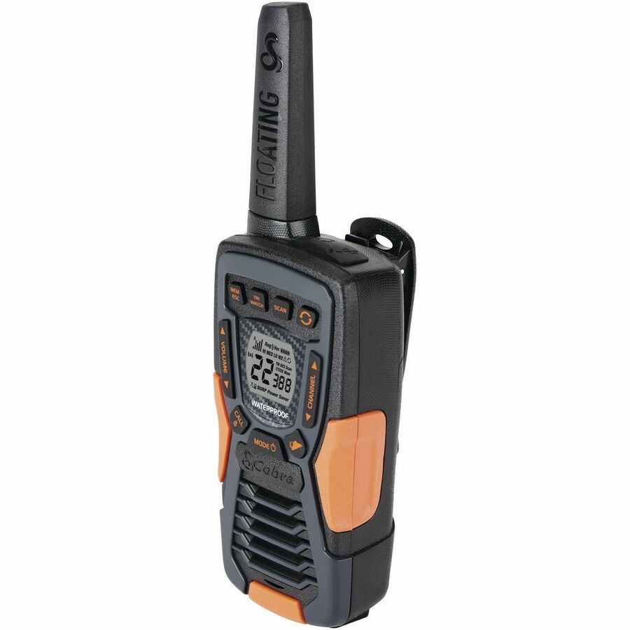 | Marketing Information | The Cobra ACXT1035R FLT is a waterproof, full-featured walkie talkie built for the most demanding conditions. With up to 37-mile range, Waterproof Rating and floating design, NOAA Weather Alerts, Rewind-Say-Again and more, the rugged ACXT1035R FLT is engineered for clear communication anywhere. |