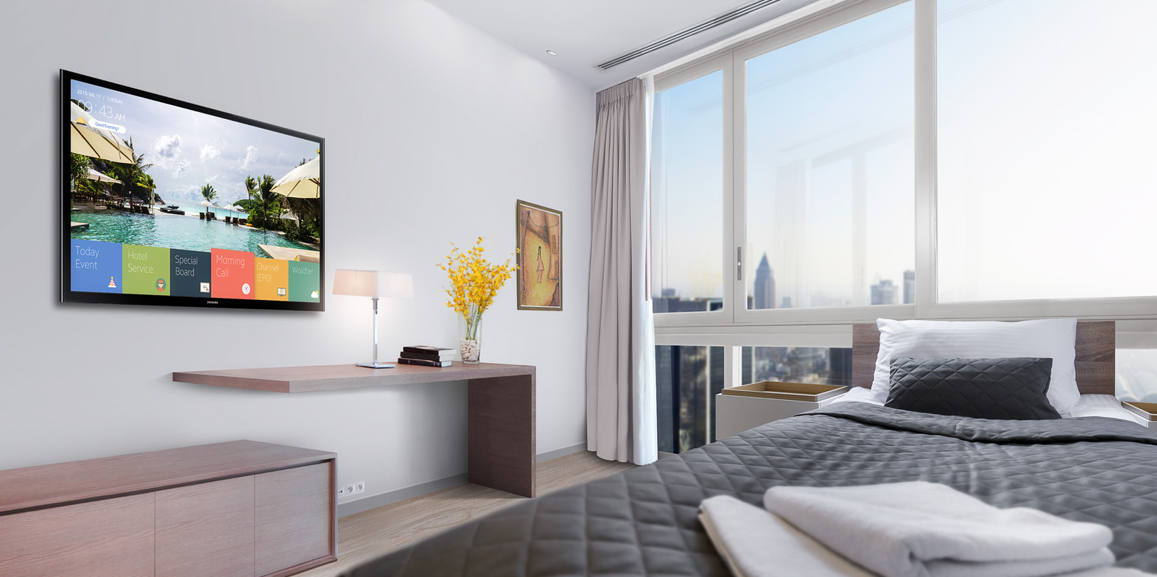 | Marketing Information | To better serve the hospitality industry, Samsung's slim-designed HE470 Series displays can foster a differentiated and memorable in-room experience. This display functions as an all-in-one content center where managers can access a user interface template library to deploy customized content to end users. Hotel managers can customize guest viewing experience and reinforce branding and cost-effectiveness through an enhanced Home Menu that allows guests to view essential hotel information. Plus, the embedded LYNK REACH 4.0 solution allows for remote, centralized and efficient display management through a single remote control center, while its System Integrator compatibility and USB cloning enable multi-device management with less installation and maintenance efforts required. |