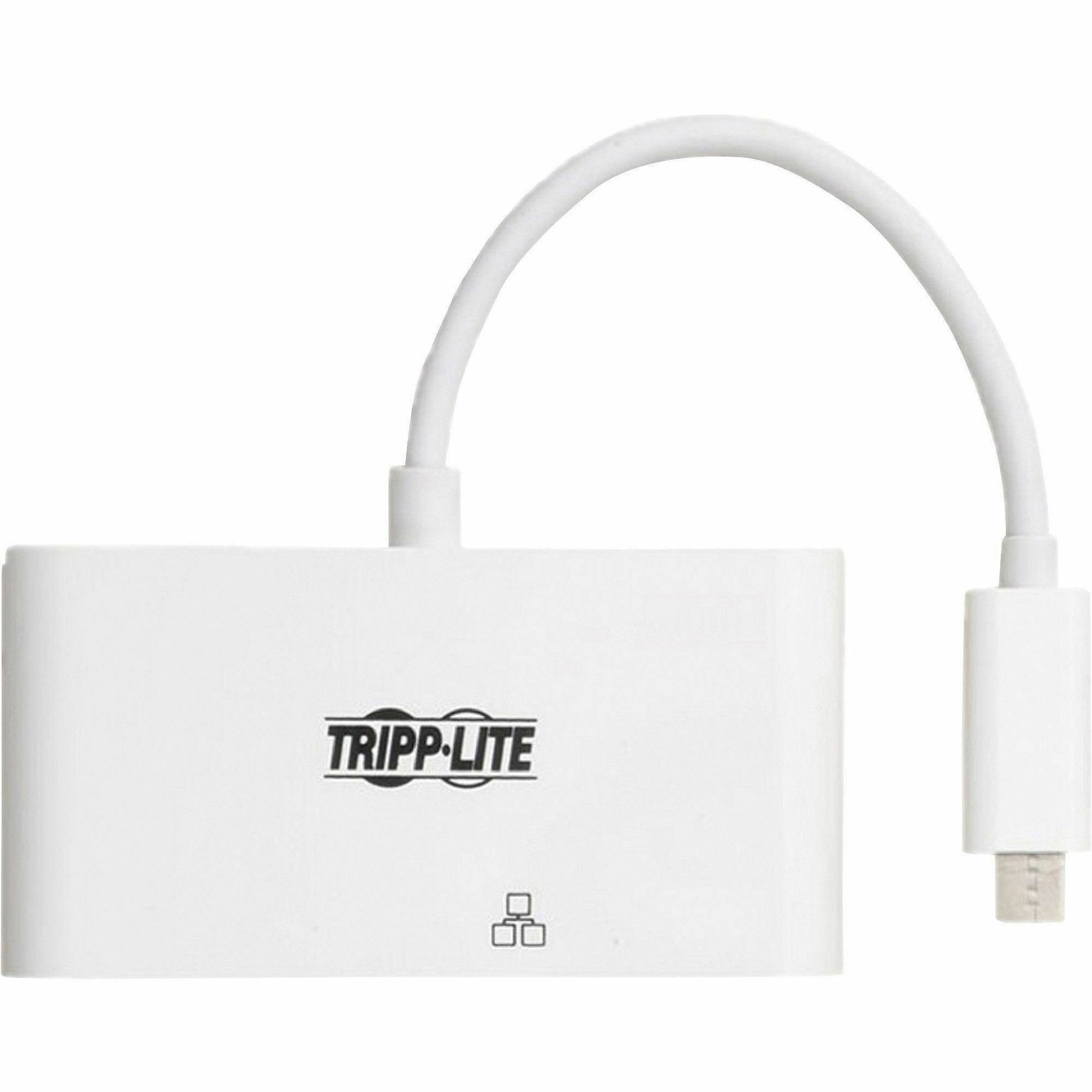 | Marketing Information | USB 3.1, generation 1 USB-C to HDMI 4K adapter expands the potential of your tablet, laptop, Chromebook, MacBook, smartphone or PC's USB-C or Thunderbolt 3 port. Plug-and-play technology makes installation quick and simple - with no software or drivers to install. Fumble-free, reversible USB-C plug connects in either direction for a quick connection every time. To send digital audio and HD video to an HDMI TV, projector or monitor, connect the HDMI port to the display using an HDMI cable (sold separately). The HDMI port supports UHD video resolutions up to 3840 x 2160 (4K x 2K) at 30 Hz. Adapter is perfect for transmitting digital audio and 4K video to a large display, adding a thumb drive or other USB peripheral, powering and charging a PD Charging-compliant mobile device, and connecting to a Gigabit Ethernet network all at the same time. |