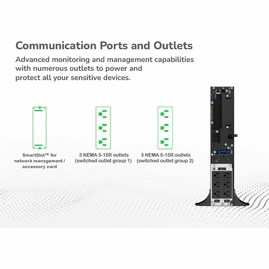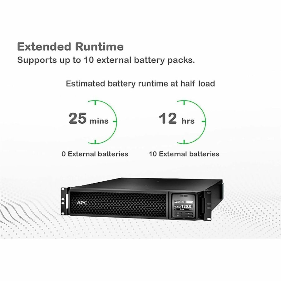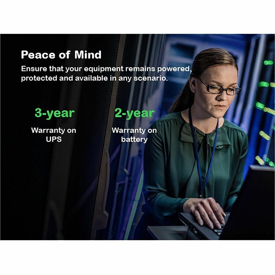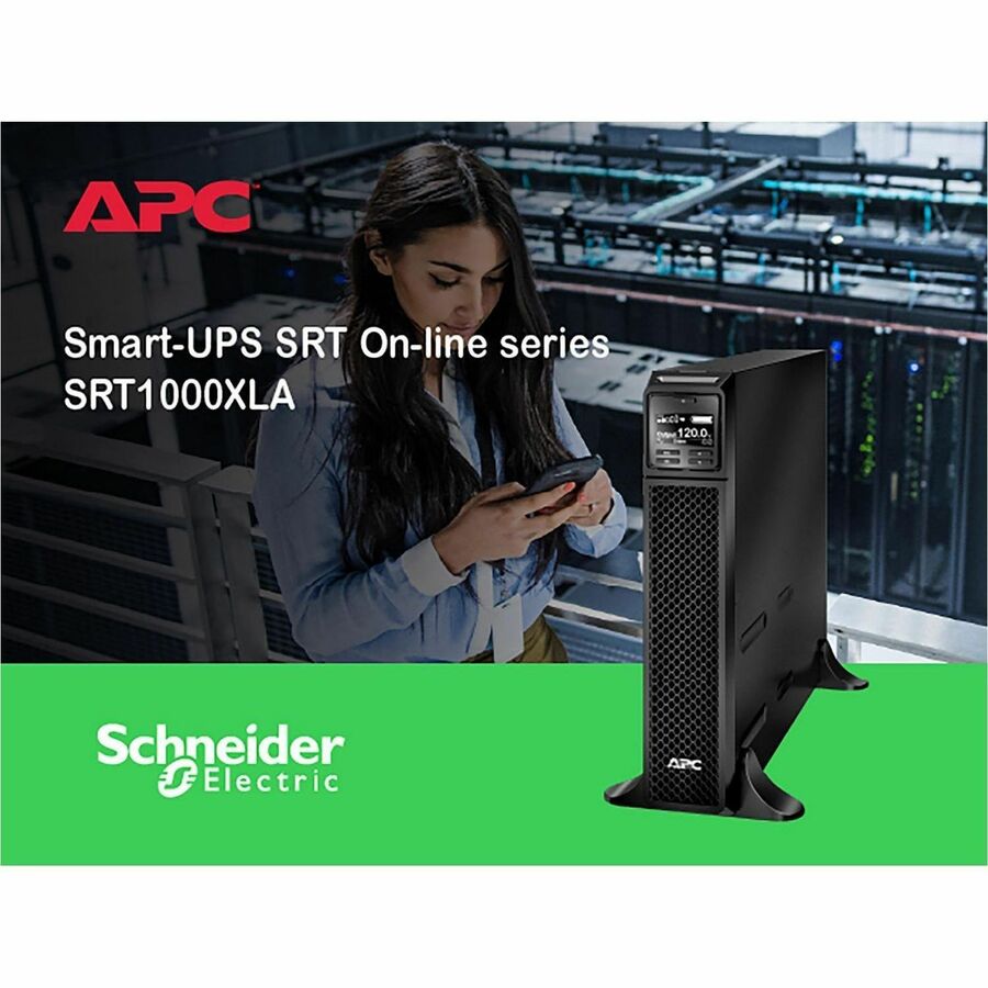 | Marketing Information | This APC Smart-UPS is designed for IT professionals or network administrators to maintain business uptime and continuity. This 1000VA on-line tower UPS provides pure sine wave power and extended runtime to support critical electronics during power disruptions. It comes with NEMA 5-15P input and 6x NEMA 5-15R outlets. It has a SmartSlot for optional Network Management Card that enables graceful shutdown of physical servers, virtual machines & HCI Clusters via PowerChute Network Shutdown. The UPS can connect to EcoStruxure IT or third-party centralized management platforms. The UPS has a 3-year warranty, and the built-in lead-acid battery has a 2-year warranty. The UPS is compatible with SRTRK4 (4-post) and SRTRK3 (2-post) rail kits sold separately. |