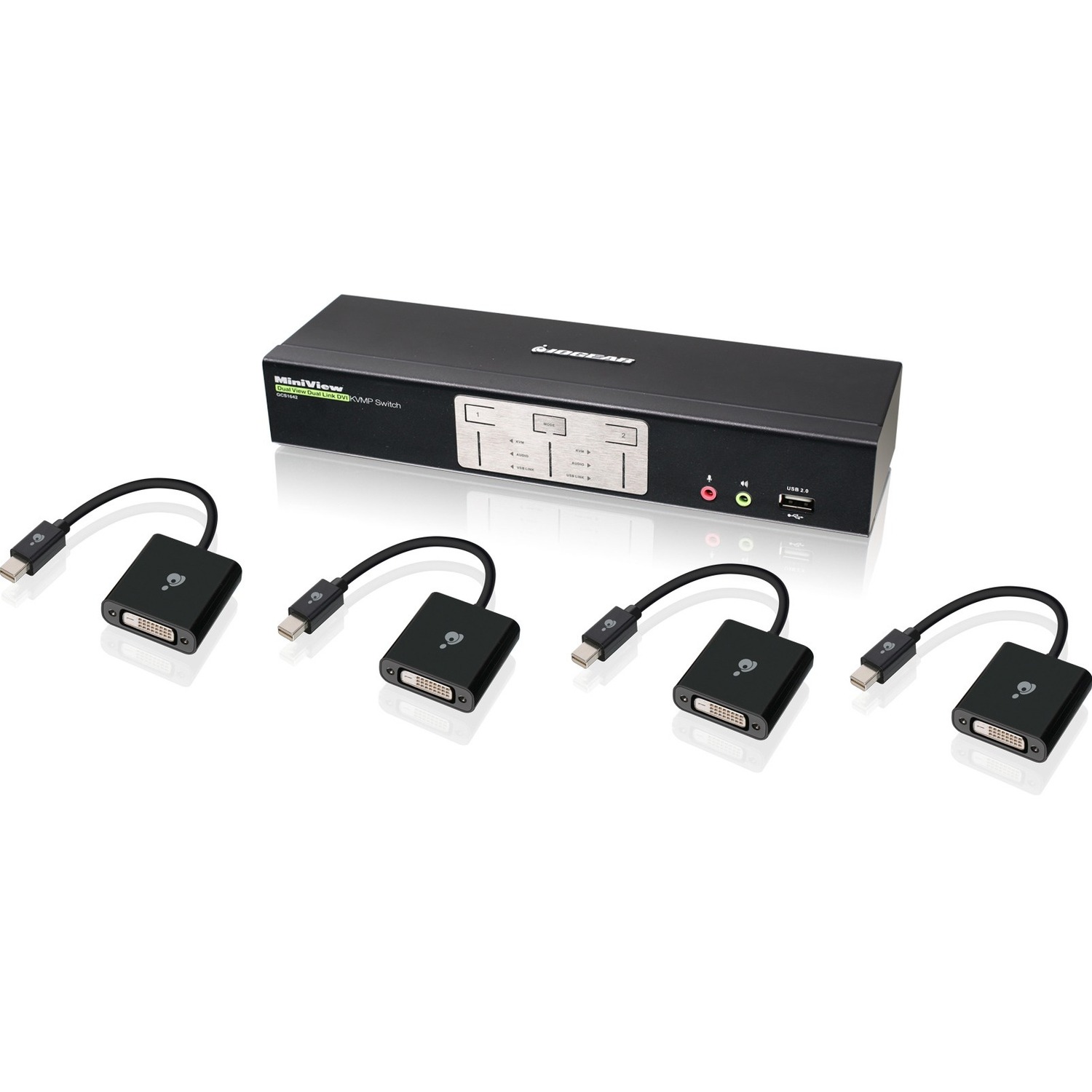 | Marketing Information | 2-Port Dual Monitor Dual-Link DVI / Mini DisplayPort KVM Switch IOGEAR's DVI and Mini DisplayPort bundle is the perfect accessory for professionals who need the flexibility of DVI and Mini DisplayPort connections. The Dual-Link DVI and Mini DisplayPort KVM Solution enables effortless control over 2 DVI or Mini DisplayPort computers using a single USB keyboard, USB mouse and two monitors. This bundle is perfect for a home office or small / medium size business, as it offers the flexibility of choosing between DVI and/or Mini DisplayPort computers. Take advantage of your existing computers, and use the included Mini DisplayPort adapters to display content from your Mini DisplayPort enabled devices. Flexible High Resolution While the 2-Port Dual-Link DVI KVMP switch supports native resolution up to 2560x1600, this dual monitor switch also able to support up to 4K UHD 3840 x 2160 HDMI monitors2 and graphic cards. Take full advantage of the included active adapters to have a combination of DVI and/or Mini DisplayPort computer interfaces, as well as 4K video resolution. In addition, the IOGEAR's DynaSync™ remembers your monitor's ideal resolution and refresh rate (EDID), making it possible to boot all your computers simultaneously, switch back and forth between computers, and still maintain the ideal video settings of the monitor. Connect, Switch, and Share IOGEAR's 2-Port Dual Monitor Dual-Link DVI KVMP with Adapters Kit is a Plug-N-Play solution, eliminating the need to download any software or drivers. Easily switch between the 2 connected computers with either hotkeys, front push buttons, or a 3-button mouse (mouse emulation must be on). This 2-Port Dual Head (Dual Monitors) Dual-Link DVI KVMP also features two USB 2.0 peripheral ports for asynchronously sharing USB devices between your computers. A powered USB hub may be attached to the peripheral ports for added functionality. The KVMP includes a 3.5mm 2.1 audio and microphone port; perfect for as a desktop solution. Offering a complete out-of-the-box solution, this dual head KVMP is a straight forward computer switch solution for DVI and Mini DisplayPort connections. DisplayPort monitors are not compatible with this KVM. The included Mini DisplayPort adapters are used for connecting Mini DisplayPort source computers to the KVMP. |