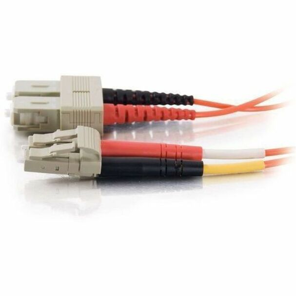 | Marketing Information | With LC to SC termination, this high quality fiber optic patch cable is specifically designed for fast ethernet, fiber channel, ATM and gigabit ethernet applications. The small LC connectors satisfy the need for higher port density both in the telecom room and the work area, and offer twice the port density of traditional SC and ST fiber connectors. The LC connector with its RJ-style latch clip design is easy to engage and disengage, and gives each connection greater durability in resisting pulls, strains, snags, and impacts during cabling installs and maintenance. The SC connector features a push-pull locking system. The patented injection molding process provides each connection greater durability in resisting pulls, strains and impacts from cabling installs. Each cable is 100% optically inspected and tested for insertion loss before you receive it. A pull-proof jacket design surrounds the popular 62.5/125 multimode fiber, immune to electrical interference. |