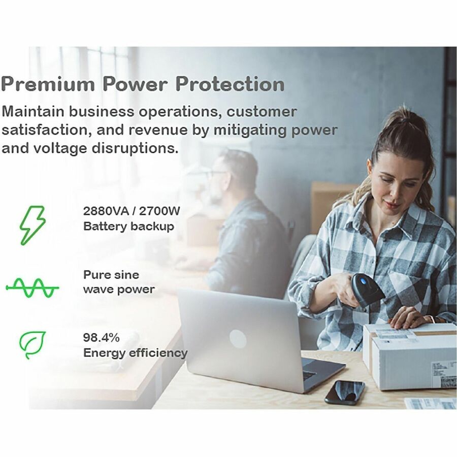 This APC Smart-UPS is designed for IT professionals or network administrators to maintain business uptime and continuity. The 2880VA line interactive tower UPS provides pure sine wave power to support critical electronics during power disruptions. It comes with NEMA L5-30P input, 8 NEMA 5-15R and 2 NEMA 5-20R outlets. It offers cloud-based remote power monitoring, UPS firmware upgrades, remote diagnostics and proactive email notifications with recommended actions. It has a SmartSlot for optional Network Management Card that enables graceful shutdown of physical servers, virtual machines & HCI Clusters via PowerChute Network Shutdown. The UPS can connect to EcoStruxure IT or third-party centralized management platforms It provides surge protection against lightning strikes, power sags, brownouts and surges. The SMT UPS has a 3-year warranty, and built-in lead-acid battery has a 2-year warranty. It is compatible with a dedicated user-replaceable battery, and the APC replacement battery cartridge helps restore UPS performance to the original specifications.