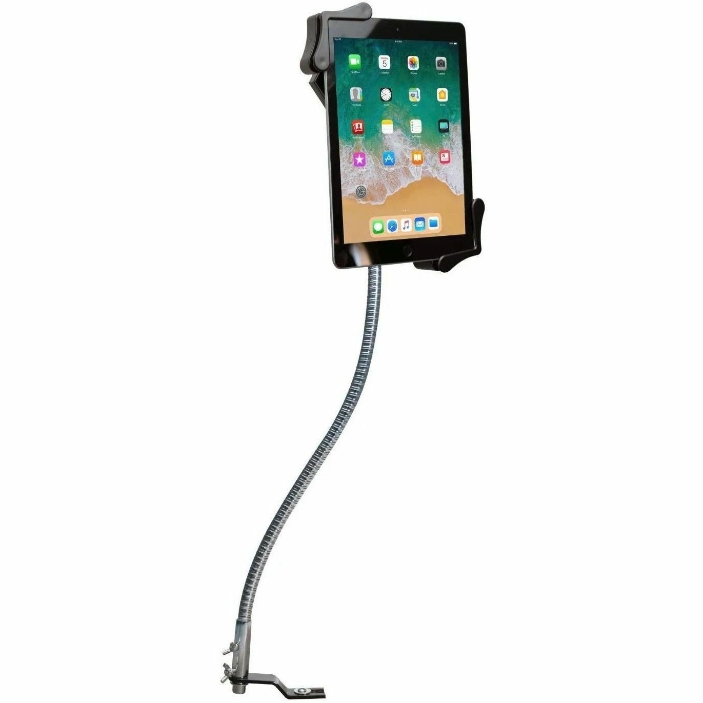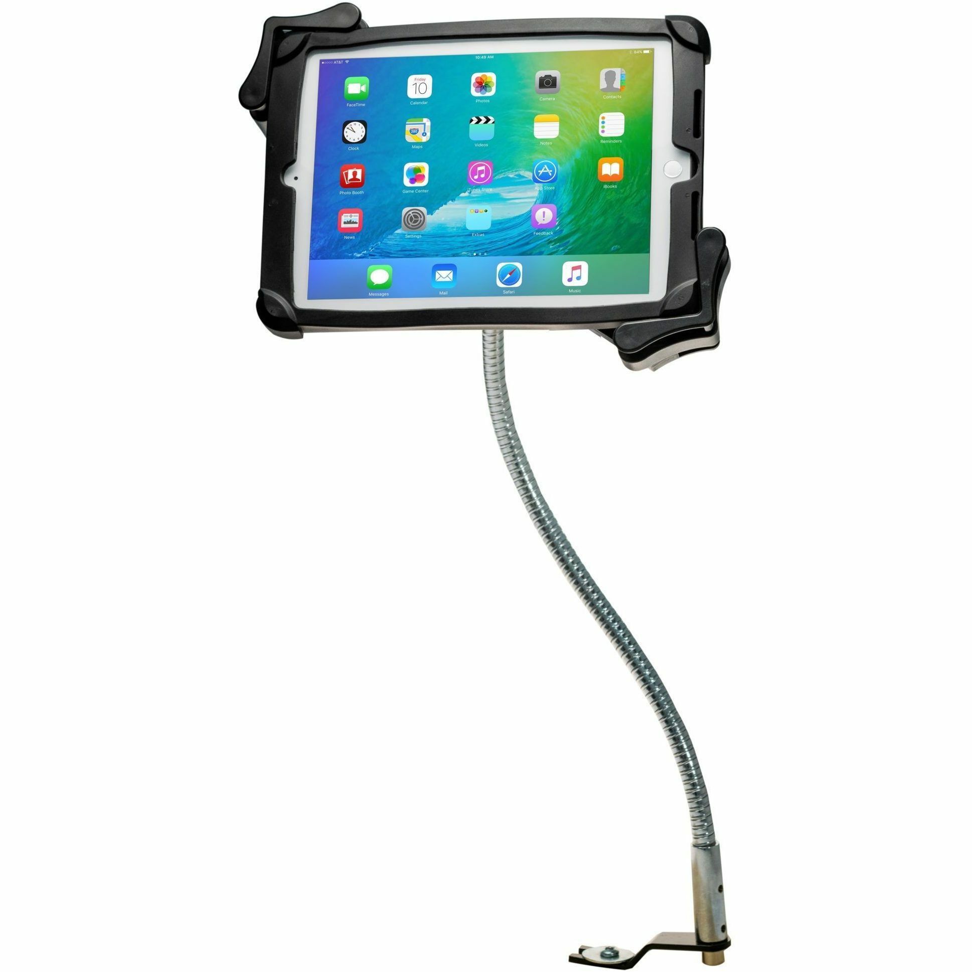 | Marketing Information | This flexible tablet mount allows you to display your tablet at any angle in the front seat of your car. Designed for use with commercial and passenger vehicles alike, this drill-free car mount installs easily to your vehicle's seat rail using included mounting hardware and can be safely removed at any time. The flexible gooseneck can be repositioned to support your tablet at any angle while still providing enough rigidity to withstand stops, starts, and turns. The slide-adjustable tablet holder also tilts and rotates 360 degrees for portrait and landscape orientations. Its unique corner-grip design allows full access to your tablet's ports, buttons, cameras, and headphone jack, for card reader compatibility. Features: