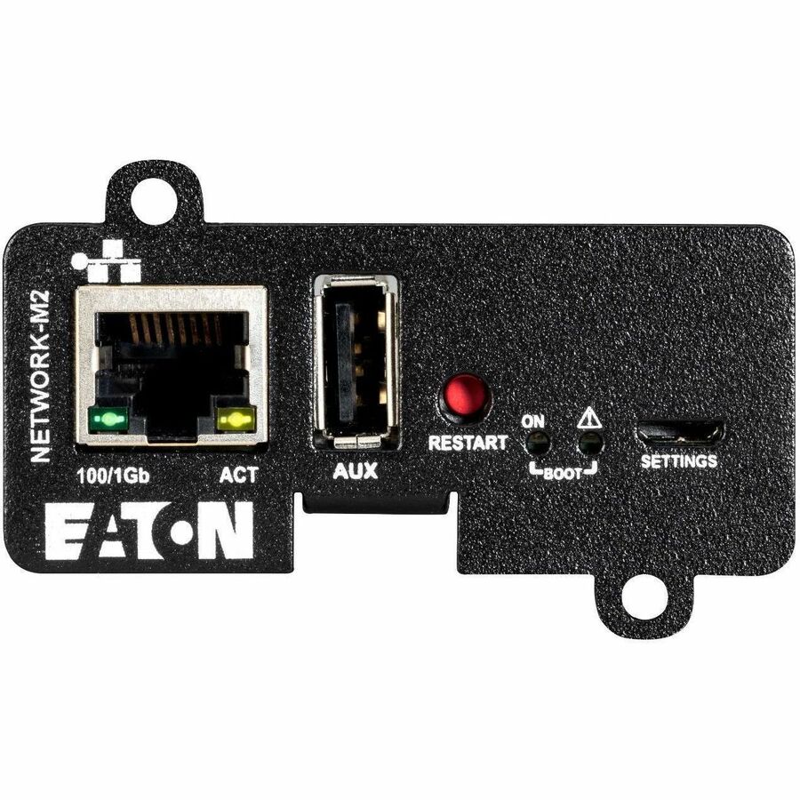 | Marketing Information | UPS Connectivity Device Certified to Strict UL Cybersecurity Standards The NETWORK-M2 Gigabit Network M2 card meets both UL 2900-1 and IEC 62443-4-2 cybersecurity standards, empowering IT professionals with superior Gigabit speed, capabilities and features, while ensuring the highest level of defense against emerging cybersecurity threats. Security enhancements include strong encryption, configurable password policy and usage of CA and PKI signed certificates. This network interface is recommended for use with better performing, cost-effective and widely deployed Gigabit network switches. Compatible with Eaton Intelligent Power Manager NETWORK-M2 works with IPM v1.61 and higher to improve business continuity by triggering policies configured to keep mission-critical applications running in case of power or environmental anomalies, including virtual machine relocation or automated disaster recovery action. Enables Remote UPS and PDU Management NETWORK-M2 turns a compatible UPS system or PDU into a managed device on your network. It enables remote management of a UPS through load shedding and safe shutdowns and reboots protected devices attached to load segments. It monitors site electrical data, UPS self-test logs, alert logs and logged power events like blackouts, brownouts and overvoltage conditions. You can receive alert notifications via email or SMS. Real-time clock links to a Network Time Protocol (NTP) server to maintain current day and date even after a UPS shutdown. Supports Multiple Protocols This network interface provides versatile support through IPv4, IPv6, HTTP, HTTPS, SMTP, SNMPv1, SNMPv3, SMTP/SMTPS, SSL and SSH. It also supports Google Chrome and Mozilla Firefox web browsers. DHCP/Manual configuration support enables automatic or manual assignment of network settings. Optional Sensor Monitors Environmental Conditions The EMPDT1H1C2 Environmental Monitoring Probe (EMP) Gen 2 (sold separately) provides remote temperature and humidity monitoring, as well as a dry contact interface to monitor alarm, security and telecom devices. You can daisy-chain up to three EMPDT1H1C2 probes to a host, allowing multiple sensor connection. The probe is compatible with NETWORK-M2 and Eaton rack PDUs, including G3 (firmware 4.x or later), G3HD and G3+ models. |