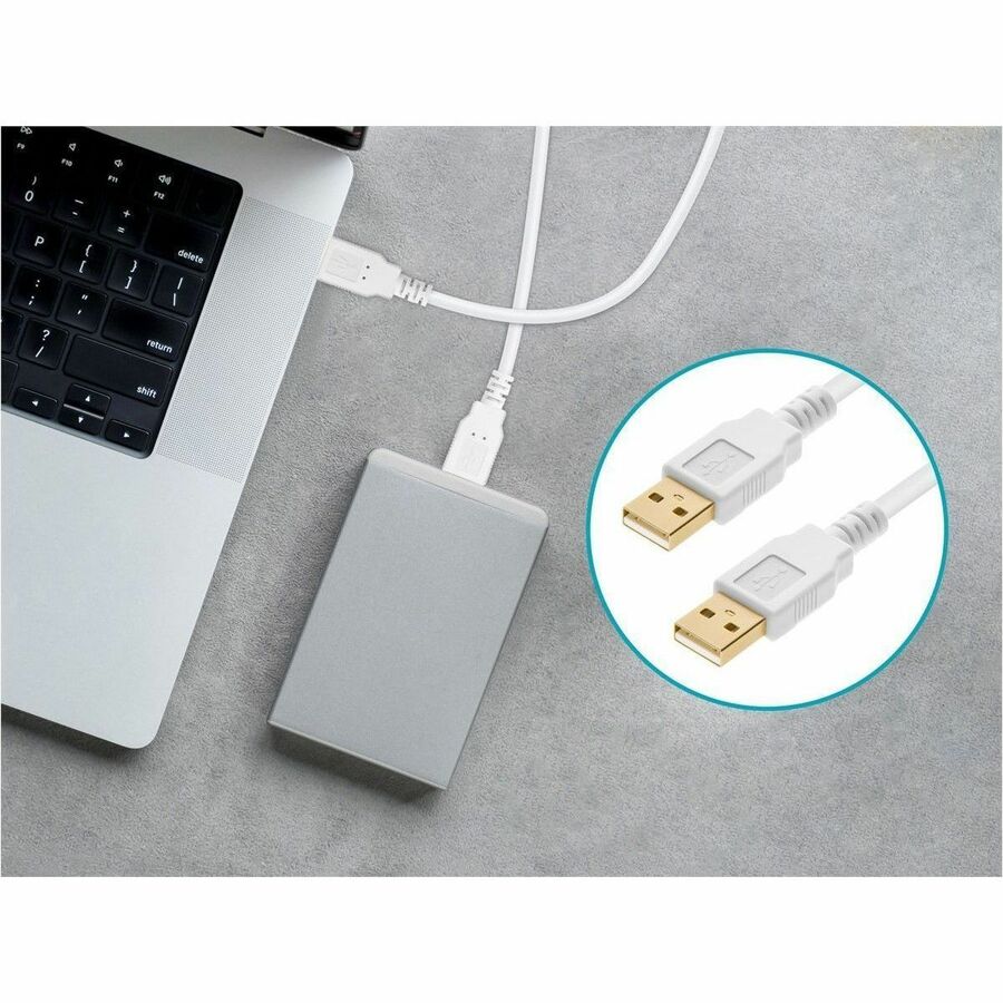 3 ft (0.91 m) USB-A Data Transfer Cable - First End: 1 x USB Type A - Second End: 1 x USB 2.0 Type A - Gold Plated Connector - 28/24 AWG - White