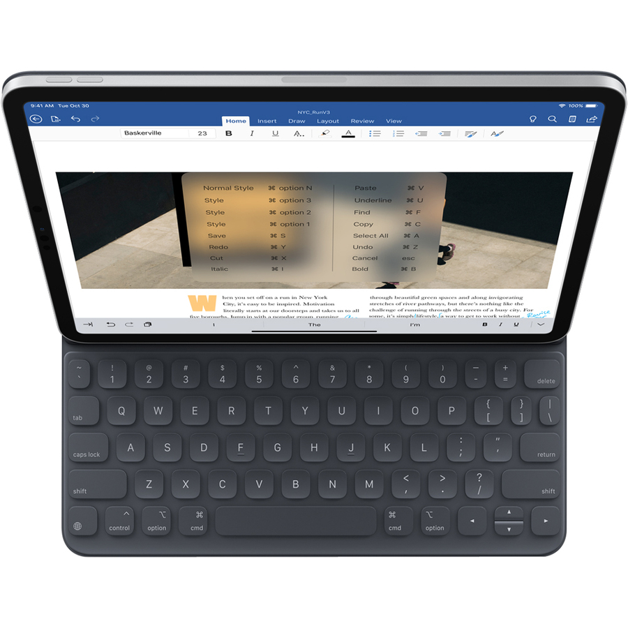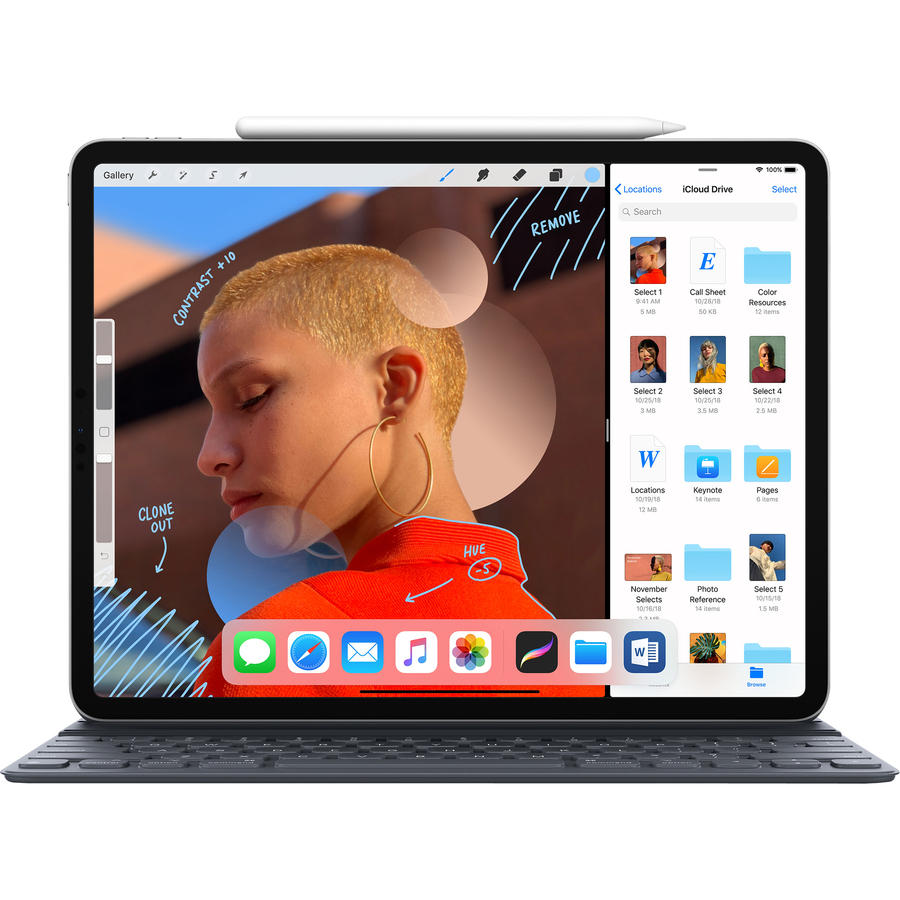 | Marketing Information | Meet the new iPad Pro. It's all new, all screen, and all powerful. Completely redesigned and packed with our most advanced technology, it will make you rethink what iPad is capable of. And what a computer is capable of. The new all-screen design means iPad Pro is a magical piece of glass that does everything you need, any way you hold it. With new, intuitive gestures, getting around is simple. Just swipe up to go Home. The new Liquid Retina display goes from edge to edge. True-to-life color and ProMotion technology make everything look gorgeous and feel responsive. You've got to see it - and touch it - to believe it. Face ID comes to iPad. It's engineered for secure unlocking and works seamlessly whether you hold it in portrait or landscape. It's the world's most secure facial authentication in a tablet. Use Face ID to unlock your iPad Pro, log in to apps, and pay with a glance. It's one password you can't forget. A12X Bionic is the smartest, most powerful chip we've ever made. It has the Neural Engine, which runs five trillion operations per second and enables advanced machine learning. Translation: It's faster than most PC laptops. Put all that power to work by multitasking with just a few swipes. Work on a creative project, message with a friend, search the web for inspiration, and make a FaceTime call. All at the same time. A12X Bionic delivers 2x faster graphics. Which makes iPad Pro the perfect machine for augmented reality and a great way to play immersive games. Reality just got really fun. |