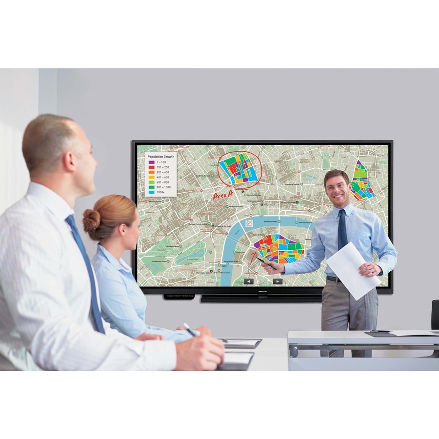 | Marketing Information | The PNL851H/751H/651H AQUOS BOARD interactive display systems are made for show and tell in the digital age. Whatever screen size you choose-85" , 75" , or 65" Class (84 9/16" , 74 1/2" , or 64 1/2" , diagonally respectively)-you get pristine 4K Ultra HD resolution. With a pre-installed controller and built-in whiteboard and wireless functionality, they are always ready for a quick meeting. The touchscreen supports up-to 20 touch points at a time. You can use either a finger or the bundled touch pen, which gives a Pen-on-Paper® writing experience. Your group collaborations just got more seamless and intuitive. Cutting-Edge Panel Technology Supporting 4K Ultra HD (3,840 × 2,160) pixel resolution, the LCD panel renders texture and detail of images and small text. From architecture to engineering to graphic arts, these monitors excel in demanding professional settings. The panel boasts new optical technology that uses advanced opto-mechanics and signal processing. It differentiates finger and pen input, so you can write and draw on the screen with intuitive ease. An anti-glare film minimizes fingerprint soiling and reduces reflections. Even in a brightly lit room, onscreen content is easy to read. Built-in Controller with IWB Launcher The PNL851H/751H/651H interactive displays have a built-in controller with a new IWB Launcher that makes it easy to operate these all-in-one interactive whiteboards. You don't even need to hook up a dedicated PC. When you start up the main unit, the IWB Launcher is displayed automatically. Simply touch the icons on the screen for instant access to the features you want to use. Wireless Connectivity Wireless LAN and Bluetooth® compatibility allow wire-free connection to multiple devices-including smartphones, tablets and computers. No need for tangled wires or conversion adapters. Each device can project images wirelessly to the monitor. You can then capture the wirelessly projected screen and freely add annotations to it using a touch pen. Direct Drawing Switch to Direct Drawing to use the LCD monitor like a regular whiteboard. Even for first-time users, this simple write-and-erase function is a breeze to operate. You can also save screen captures as PDF files, either on internal storage or on an external storage device. Simultaneous Writing The LCD panel recognizes up-to 20 touch points, so when inspiration strikes, multiple people can use their finger or touch pen to add input. Meetings, lessons and brainstorming sessions will come alive. |