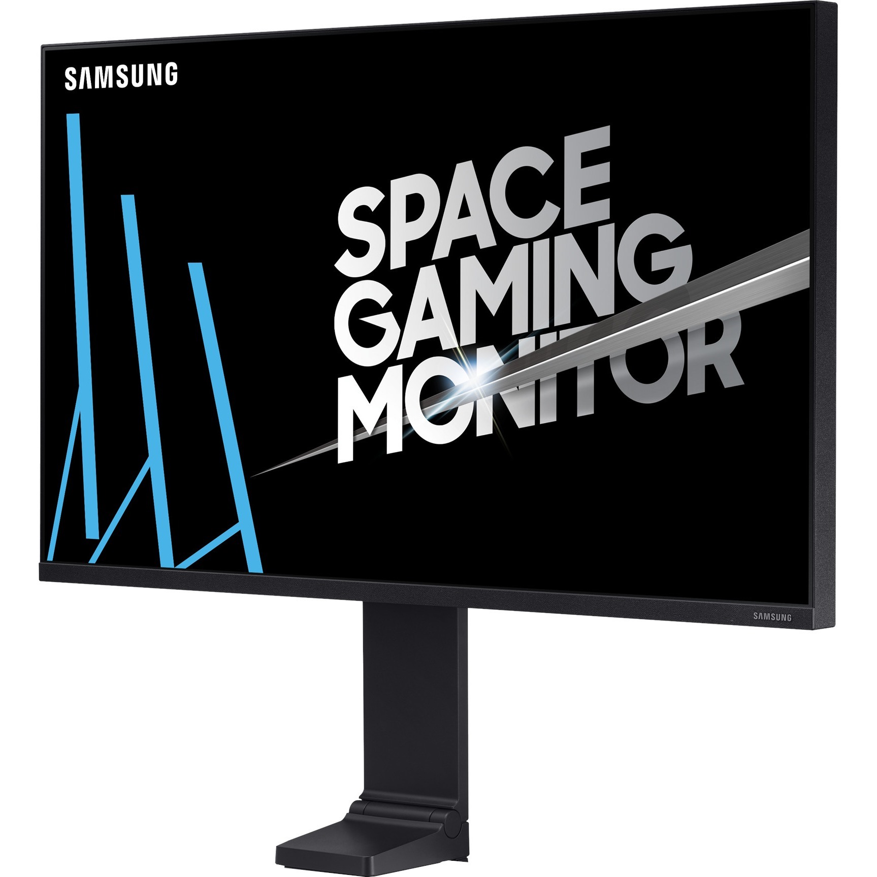 | Marketing Information | Reclaim Your Game Space Experience immersion with a 32' screen that grabs you into the heart of the action. After you've conquered your enemies, push the Space Monitor flat against the wall for more space. When you're ready for your next game, just pull it back towards you. 144Hz Refresh Rate Space Gaming Monitor's lightning-fast 144Hz Refresh Rate ensures flawlessly smooth action scenes even in games with high frame rates. Adjust the Refresh Rate to 60Hz/120Hz when necessary. All Action, No Delay AMD Radeon FreeSync™* keeps your monitor and graphics card Refresh Rate in sync to reduce image tear and stutter. Watch movies and play games without any interruptions. Even fast action scenes look seamless and smooth. More Gaming Power Get optimal colour settings and image contrast to see scenes vividly and spot danger lurking in the darkness. Game Mode adjusts any game to fill your screen with every detail in view. See from Your Level The Space Monitor's zero-level height adjustable stand lets you find the spot to look down on your opponents. Quickly and easily adjust the monitor from sitting flat on the desk to flush against the wall or any other height in between. Your Game in Detail Packing in 1.7 times the pixel density of Full HD, The Space Gaming Monitor WQHD resolution boasts incredibly detailed, pin-sharp images. Easy Installation Easy to install. The integrated clamp enables quick installation. Adjustable up to 3.54" (90mm), it allows the Space Monitor to be attached to desks and tables with a wide range of thicknesses. Concealed Cables The discreet stand neatly conceals its power/HDMI Y-cable in recessed chases to prevent tangling and keep your gaming space clear and free from clutter. Robust Hinge The Space Monitor's stand employs a robust hinge help to ensure smooth and precise screen positioning time after time. Developed using sophisticated Samsung technology and tested internally to withstand over 5,000 movements, it brings complete satisfaction. Do More at Once With PBP (Picture-By-Picture), view input from two sources simultaneously at their native resolution. Use PIP (Picture-In-Picture) to resize the second source to up to 25% of the screen. Place windows anywhere using Samsung's screen-splitting Easy Setting Box software. |