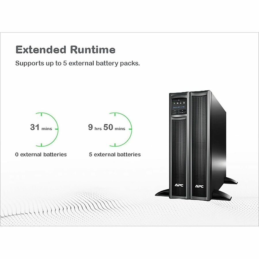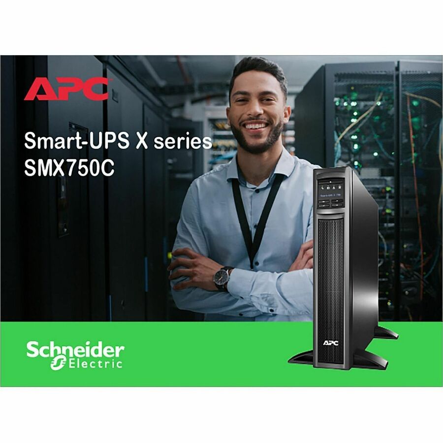 | Marketing Information | This APC Smart-UPS is designed for IT managers or network administrators to maintain business uptime, data transfer and continuity during prolonged power outages. The 750VA line interactive 2U rack/tower UPS provides pure sine wave power to support critical electronics during power disruptions. The SMX comes with NEMA 5-15P input and 8x NEMA 5-15R outlets. The UPS offers cloud-based remote power monitoring, UPS firmware upgrades, remote diagnostics and proactive email notifications with recommended actions. The Smart-UPS has a SmartSlot for optional Network Management Card that enables graceful shutdown of physical servers, virtual machines & HCI Clusters via PowerChute Network Shutdown. This uninterrupted power supply can connect to EcoStruxure IT or third-party centralized management platforms. The SMX UPS has a 3-year warranty, and the built-in lead-acid battery has a 2-year warranty. This is compatible with dedicated user-replaceable battery, and the APC replacement battery cartridge helps restore UPS performance to the original specifications. The Smart-UPS comes with a pair of tower-mounting stabilizing feet and rack-mounting brackets. The 1 switchable outlet groups allow more granular management of the power supplied to your devices. The Emergency Power Off feature enables the UPS to remotely shutdown during emergencies. |
