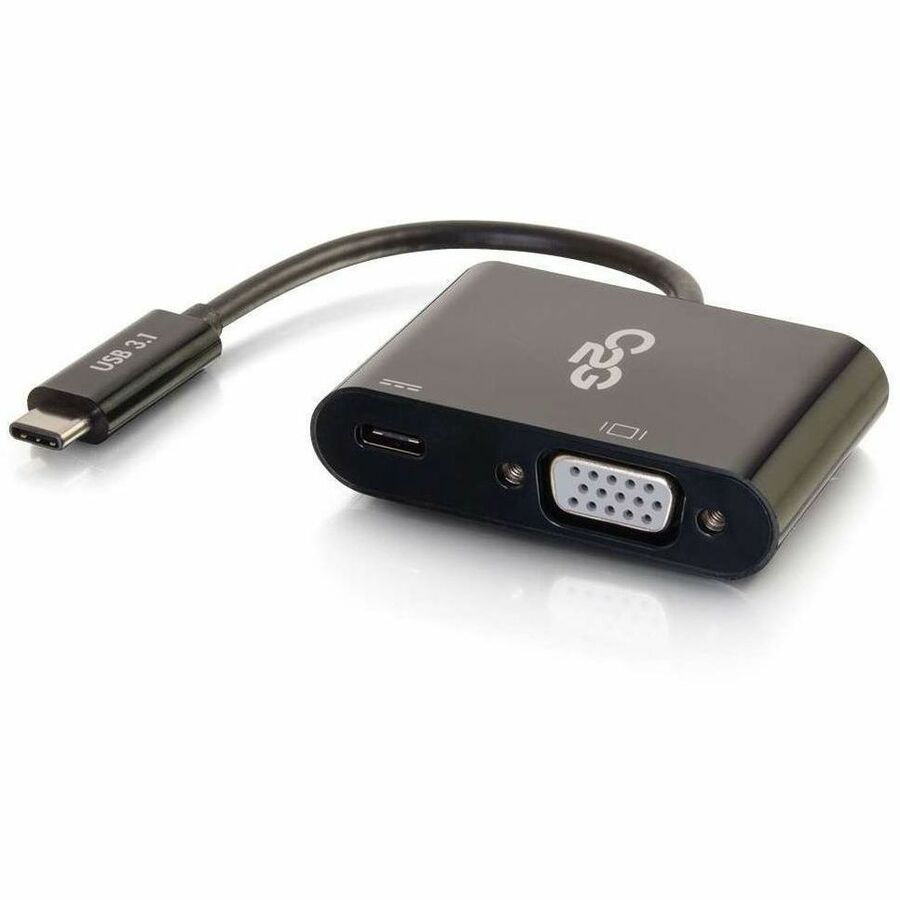 C2G USB-C to VGA Video Multiport Adapter with Power Delivery up to 60W - Black