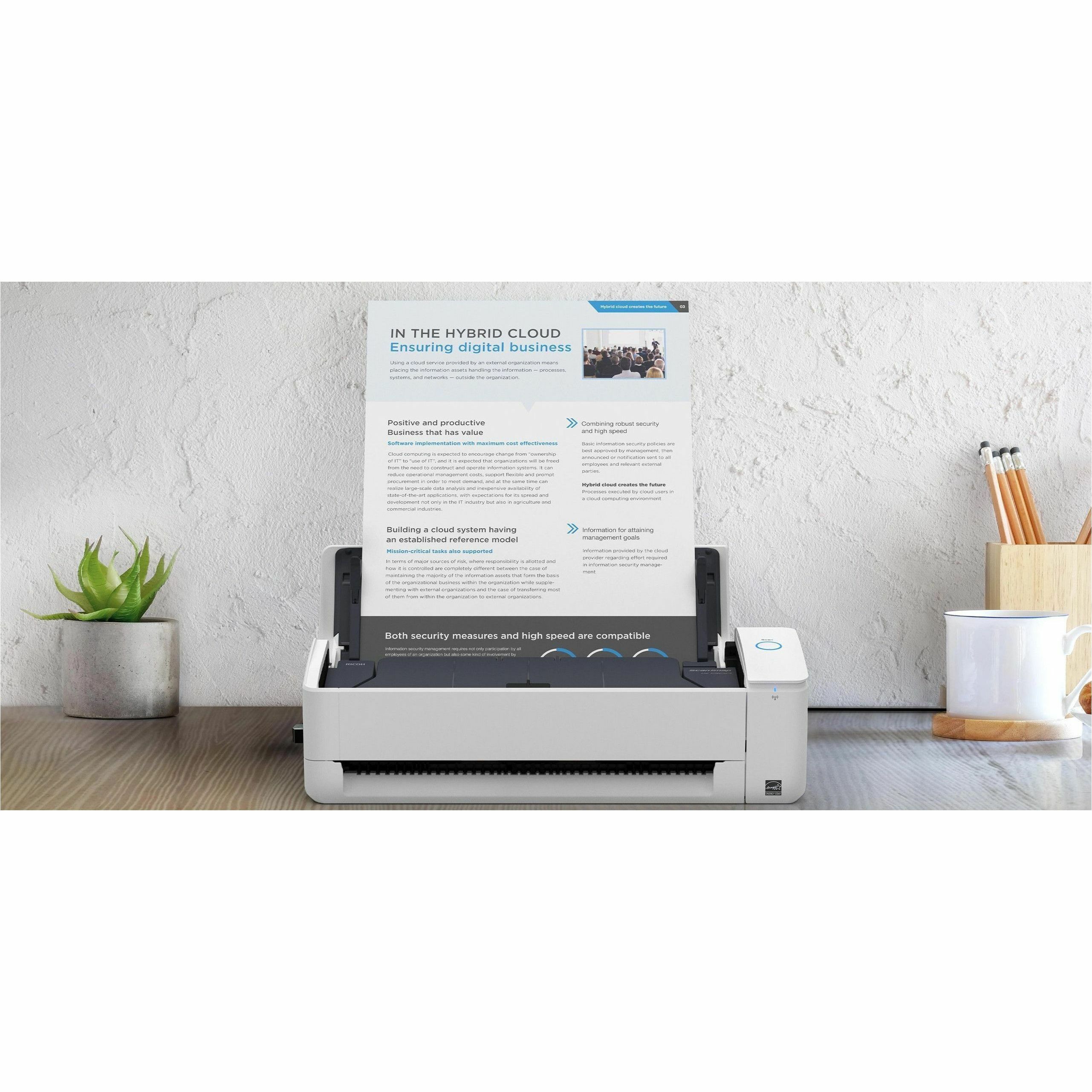 | Marketing Information | "Just the right fit" to keep life organized ScanSnap iX1300 is the compact, yet powerful solution to all your daily and ad-hoc scanning needs. At home, in the office, or even within your remote workspace, the device takes the pain out of scanning so that you are well on your way to quick and easy digitization, the moment you need it. Get right into new ways of working and scanning Two ways to scan to match your documents and environment No need to worry about saving space for documents using U-turn Scan. Equipped with a new ADF (Automatic Document Feeder) for ejecting scanned paper to the top of the scanner, sit back and relax as scanning proceeds with just a practical space of A4 size or smaller required. Use Return Scan, to read a wide variety of documents, even feeding manually one by one while multi-tasking at work. The iX1300 feeds and ejects documents from the front, making it a breeze to scan documents like folded paper, business cards, receipts, photographs, and postcards, without having to make any adjustments Scan almost anywhere Use the iX1300 to scan in any location with Wi-Fi. 2.4/5 GHz1 support allows stable wireless scanning as an added plus to USB. In environments where Wi-Fi is available, ScanSnap Cloud1 works with a variety of cloud services to save documents to all your favourite cloud services on a simple touch of the button. Images are optimized and sorting absolutely, fuss-free with a host of automated functions. Bring along your AC cable, and the iX1300 is sure to be the right fit with superb performance Handy, convenient, but powerful Simplicity makes the experience beautiful The iX1300 comes with just one button, so that you can perform all your scanning tasks with the ScanSnap-favourite "one touch". Keep digitization processes simple, while boosting efficiency Faster scanning for bigger batches Productivity is never placed second in priority with ScanSnap. The iX1300 thrives at 30 ppm and holds up to 20 sheets, doubling the capacity of its predecessor. Scan both sides of batches up to 20 documents in less than 40 seconds for speedy and hassle-free digitization. Ready to scan right away Get ready for revolutionary scanning with a single action. One single action to open the cover and bring the iX1300 to life. The extension slides out on opening of the cover, so that all you need to do, is place your documents and press the Scan button for clean and optimized images. Daily ad-hoc scanning can be carried out with the cover closed as well. No need to power the scanner on yourself, as it awakens on feeding documents from the front. |