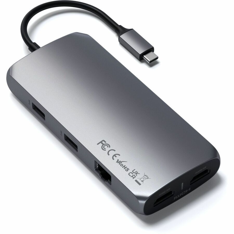 | Marketing Information | Unlock the full potential of your M1 setup with the Satechi USB-C Multiport MX Adapter. Powerful yet ultra-sleek, the adapter features dual 4K HDMI, Gigabit Ethernet, USB-C PD charging, USB-C data, USB-A data, SD card readers, and an audio jack port - all using just a single USB-C port. With its dual display capabilities, a plethora of data ports, and its modern aluminum design, M1 has finally met its match. |