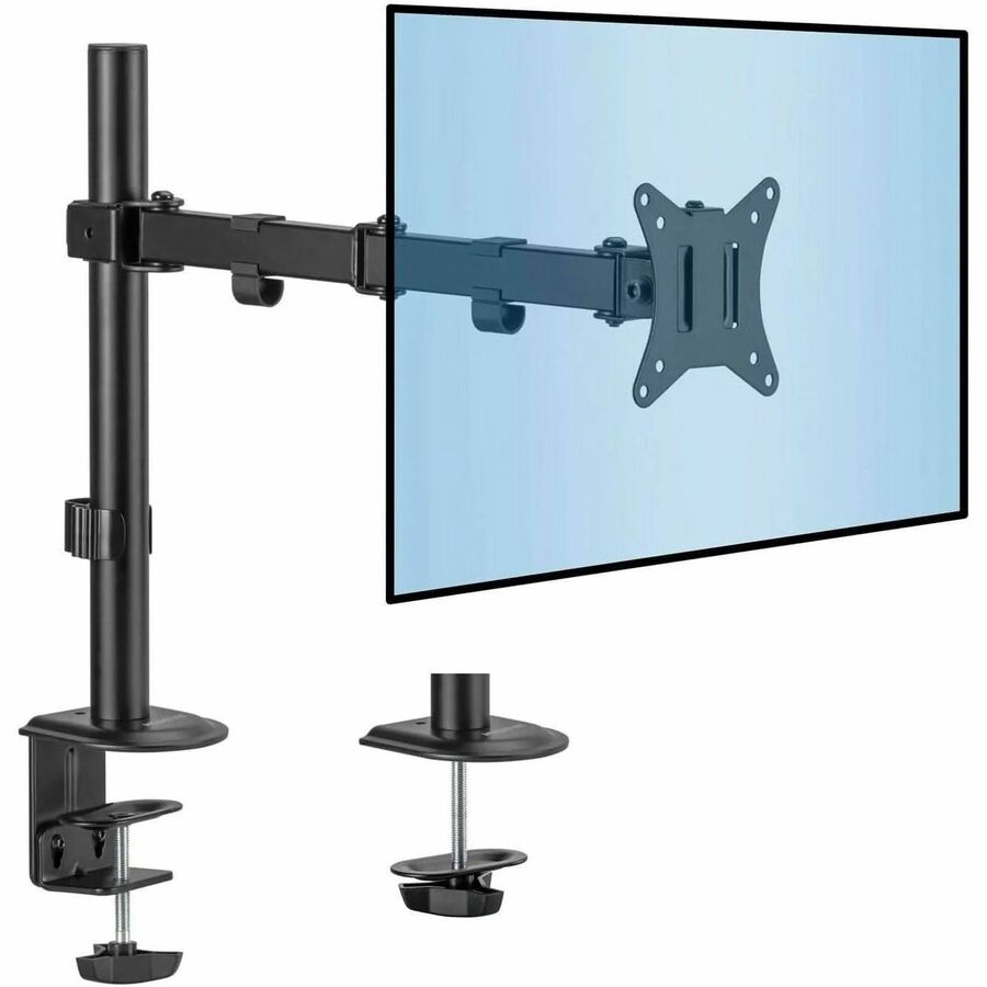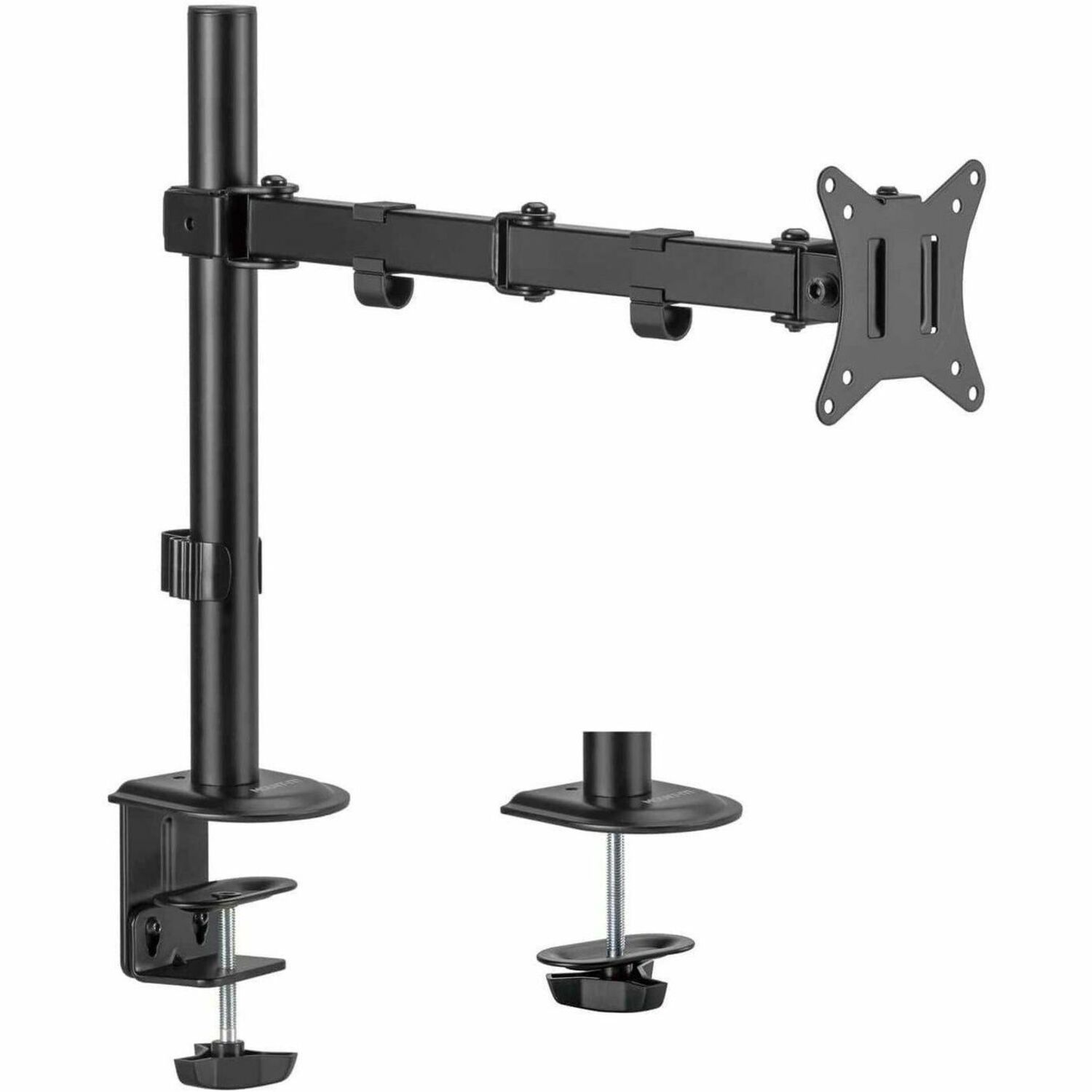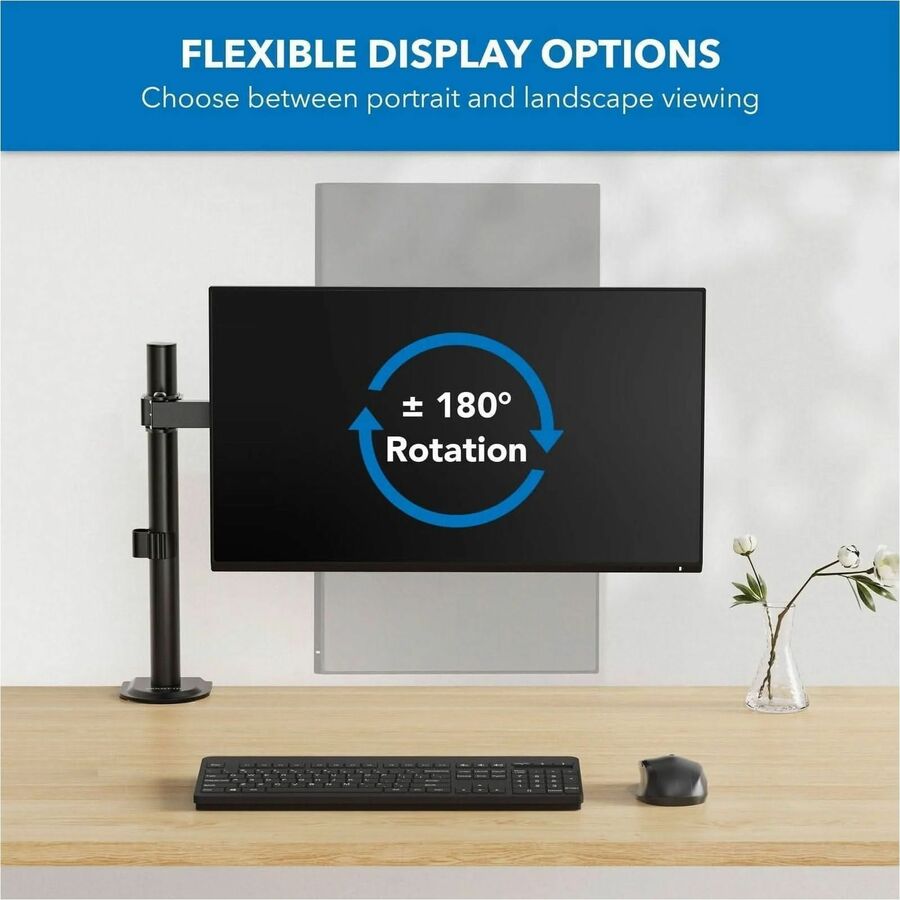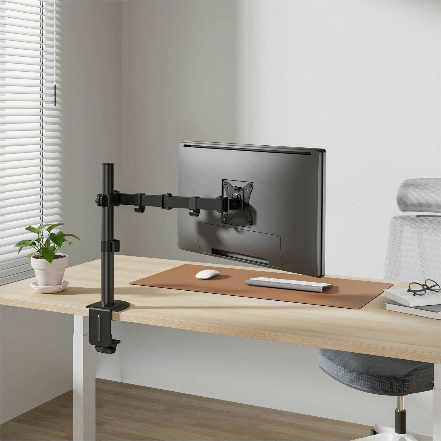 | Marketing Information | Elevate your workspace to new heights of efficiency and comfort with our versatile monitor mount, designed to meet the demands of office, business, or home environments seamlessly. Say goodbye to neck strain and hello to ergonomic working as you effortlessly adjust your monitor to eye level, fostering a healthier work setup that promotes productivity. With 180 degree swivel, 90 degree tilt, and 360 degree rotation features at your fingertips, customization is a breeze, allowing for optimal positioning tailored to your individual needs or seamless screen sharing during collaborative sessions. Universally compatible with VESA patterns of 75x75mm and 100x100mm, our mount accommodates monitors weighing up to 19.8lbs and screen sizes ranging from 17" to 32". Installation is a snap with your choice of C-clamp or grommet mount, and the added convenience of a removable VESA head ensures a hassle-free setup process. Crafted from durable steel, our mount combines strength with style to complement any workspace aesthetic. |
