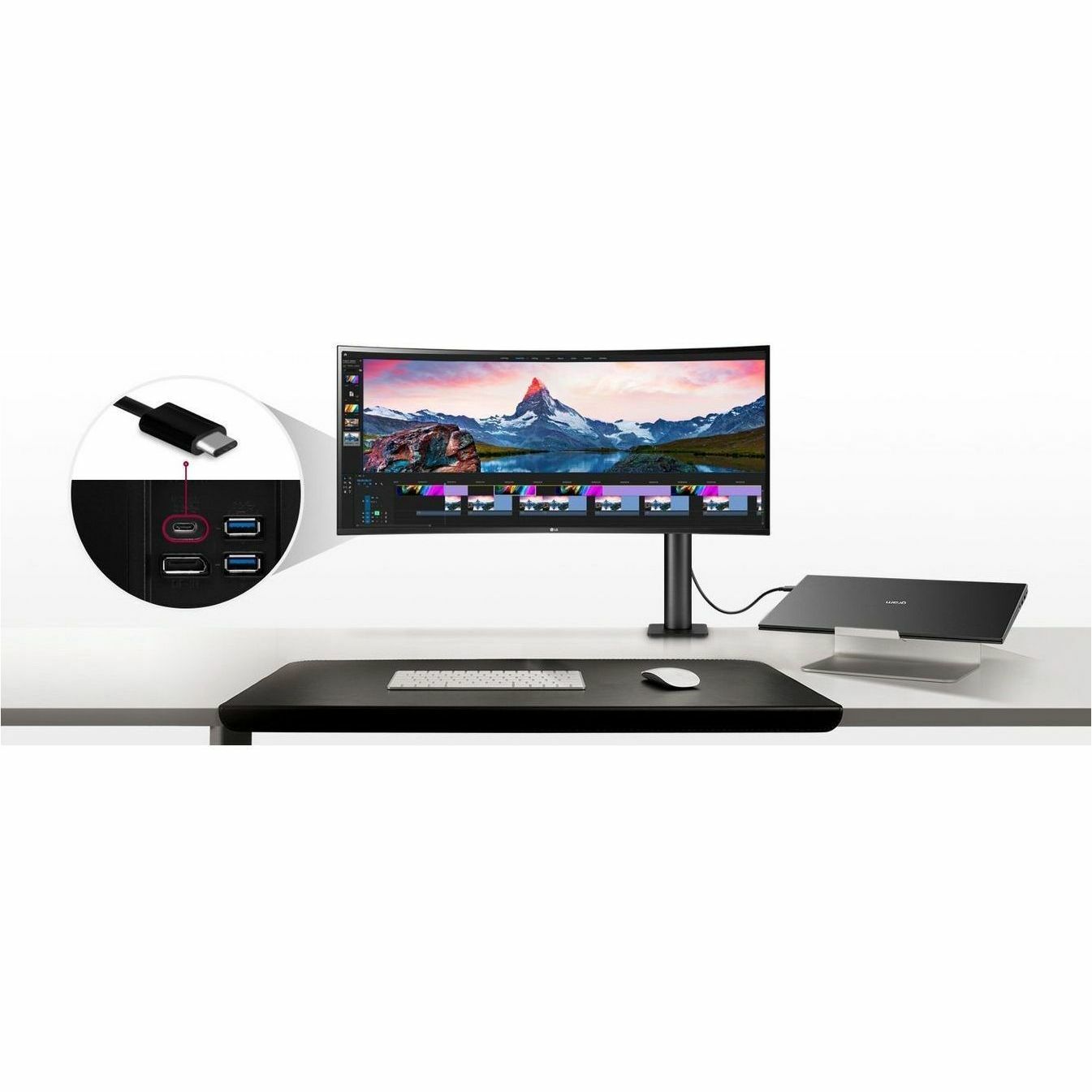| Marketing Information | 34" 21:9 UltraWide™ QHD Display | More Space for Multi-Tasking The UltraWide™ QHD screen (3440x1440 resolution, 21:9 aspect ratio) is great for work as it can display various programs at once. HDR10 | Detailed Contrast HDR technology is now applied to various content. This monitor is compatible with HDR10 (high dynamic range), supporting specific levels of colour and brightness that enables viewers to enjoy the dramatic colours of the content. IPS with DCI-P3 95% (Typ.) | True Colours and Wide View LG IPS monitor displays impeccable colour accuracy. With a wide viewing angle, the IPS display boasts with 95% coverage of the DCI-P3 spectrum. Various Movement of Display | Be Sleek and More Ergonomic Enhanced flexibility of the Ergo stand offers expanded ergonomic adjustment of extend, retract, swivel, height and tilt as well as providing perfect position of screen for more comfortable and sustainable user experience. Clutter-Free Desk Setup | Fully Use Your Desk The compact design takes up very little desk surface and also contributes to easier installation. USB Type-C™ | Easy Control and Connectivity USB Type-C™ port allows from display and data transferring to connected device charging, enabling support for your laptop all at the same time over a single cable. 90W Powerful Charge | Power Delivery Up to 90W With USB-C™ power delivery technology, you can power up a monitor, while charging the connected laptop (Up to 90W) simultaneously. MaxxAudio | Immersive Experience This streamlined display features a slim bezel on three sides and no distractions from the dazzlingly precise, lifelike image while 7W Stereo Speakers with MaxxAudio® completes your immersive experience. Reader Mode | Improved Visual Comfort To help lessen eye fatigue and provide eye comfort while reading documents on a monitor, Reader Mode adjusts color temperature and luminance similar to reading a paper book. Flicker Safe | Care for Eyes Flicker Safe reduces invisible flickering on the screen, which helps reduce eye strain. It provides a comfortable working environment for a long time. OnScreen Control | Control with a Few Clicks You can customize the workspace by splitting the display or adjusting basic monitor options with just a few mouse clicks. |