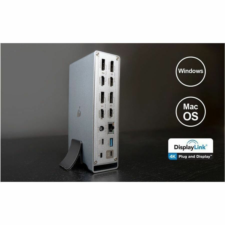 | Marketing Information | A Docking Station Like No Other Designed for true power users, the IOGEAR Dock Pro™ Universal 4K Docking Station is the ultimate work from home professional accessory. Connect to four 4K monitors with interchangeable HDMI® and DisplayPort port connections without the need for additional video adapters. With built-in USB-A and USB-C, easily connect to five high-performance devices. Take advantage of the true potential of any Windows or Mac laptop with Gigabit Ethernet port, SD/Micro SD reader and audio port. 4K Quad View Displays Expand your desktop with up to four 4K monitors without needing a video adapter. The Universal 4K Docking Station includes 4 HDMI connection ports and 4 DisplayPort connection ports, allowing you to connect any configuration of monitors for your workstation. Integrated DisplayLink chipset enables most USB-C laptops up to four at 4K @30Hz resolution. Designed for Power Users Need more from your laptop? The dock's multiple port options provide everything a power user might need from multiple external hard drives, SD card readers or wired internet. Multiple USB Ports With built-in five USB-A and USB-C 10Gb/s ports (USB 3.2 Gen.2), plug in a variety of different power users' essentials from keyboards, mice, external hard drives and more with unparalleled speeds Dual Power Options Power your dock and connected devices with either the provided DC power adapter or plug in using a USB Type C power adapter to utilize dynamic power distribution for any connected laptops or peripherals Ultimate Compatibility With integrated DisplayLink® chipset, the dock is compatible with all USB-C computers including Windows and Mac OS platforms The Dock Pro is also compatible with most USB-C tablets such as the iPad Pro or Windows tablets. Connect and charge your tablet to experience new connectivity options. |