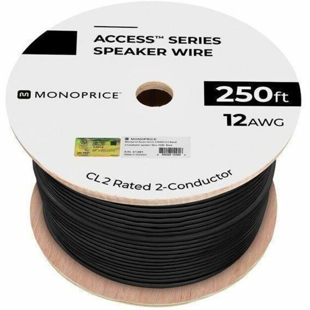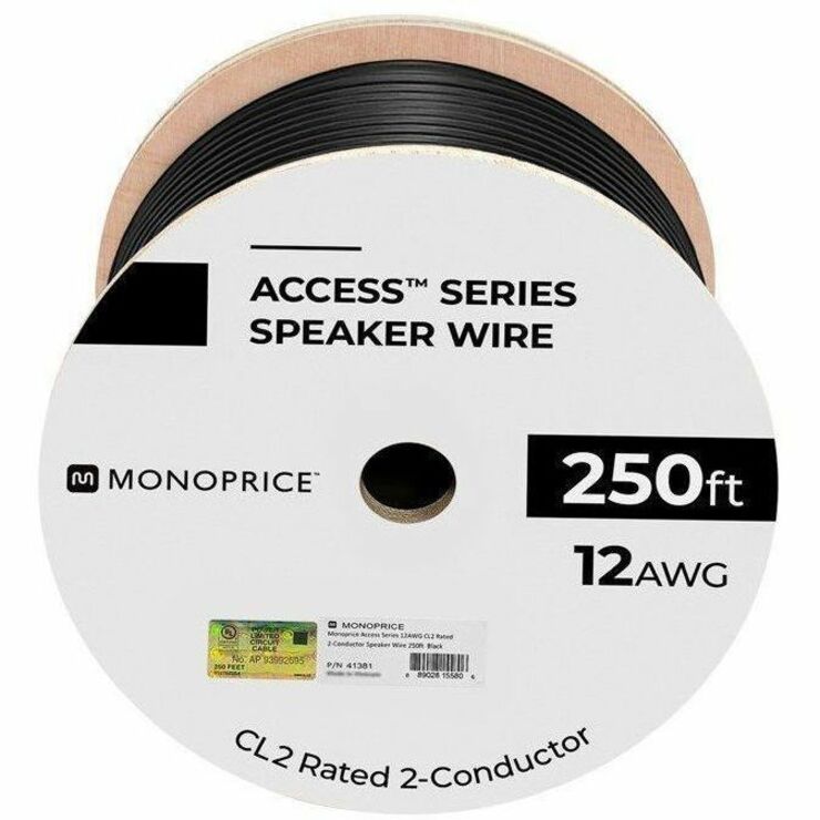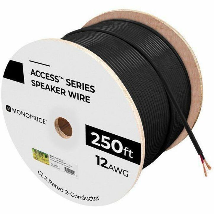 Monoprice Speaker Wire, CL2 Rated, 2-Conductor, 12AWG, 250ft, Black
