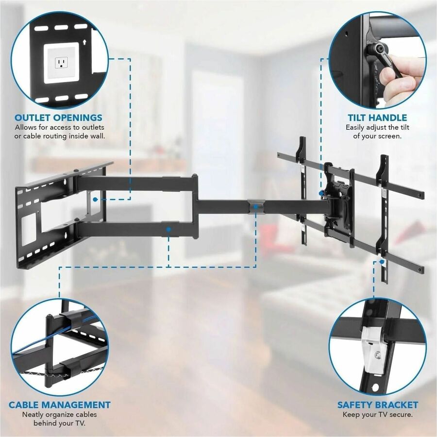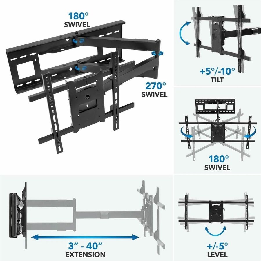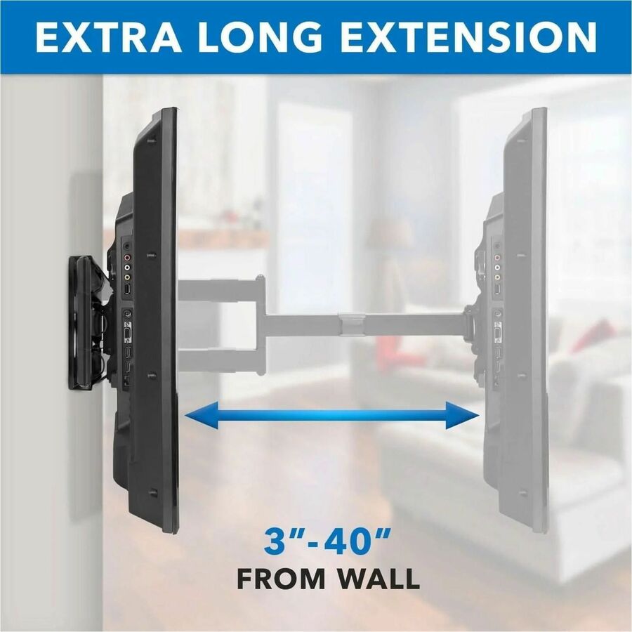 This extra long arm TV mount with full motion capabilities extends up to 40" , allowing you to position your TV perfectly in any setup. With its sturdy long reaching dual arms, it can be mounted conveniently in a corner, allowing you to maximize space. Get the most out of your TV's high definition quality with this versatile television mount.