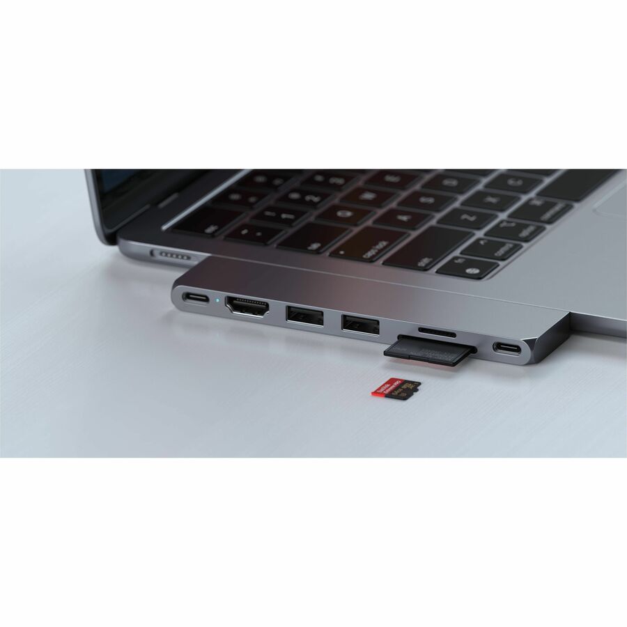 | Marketing Information | Next-Gen Technology | The Pro Hub Slim | Ports a Plenty All the ports you need in one sleek and compact device. Connect external video screens, transfer large data, and charge up your devices all at the same time. The USB4 pass-through port supports up to 6K/60Hz video output, 100W Power Delivery, and 40Gbps data transfer. Travels with You The Pro Hub Slim is built to travel. Its slim and lightweight design makes it super convenient to take on the go, wherever work takes you. Enjoy the Show Your favorite entertainment shows are just an HDMI port away. Enjoy crisp, hi-res video on your HDMI-enabled external monitor with a direct connection. Sleek Design So smooth and sleek, you will hardly notice it is there. The Pro Hub Slim comes in three colors that perfectly match MacBooks. |