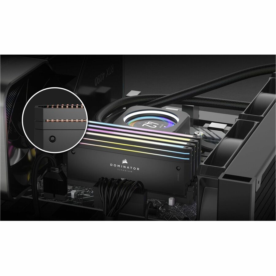 | Marketing Information | DOMINATOR TITANIUM DDR5 MEMORY | LUXURY. PERFORMANCE. OWN BOTH. Clean, refined styling combined with premium forged aluminum construction, for quality you can feel. BEYOND THE CUTTING EDGE OF PERFORMANCE Push your system to new heights with the latest DDR5 memory, unlocking even faster frequencies, greater capacities, and better performance. POWERFUL CORSAIR iCUE SOFTWARE iCUE software unlocks dynamic RGB lighting control, synchronized across your entire CORSAIR setup, with real-time temperature, voltage, and frequency monitoring. YOUR MEMORY, YOUR WAY Change your memory's style and cooling capabilities with official accessories or 3D print your own top bars for a totally unique aesthetic. CUSTOMIZABLE INTEL XMP 3.0 PROFILES Set your memory to its rated speed in seconds, via a single setting. Customize and save your own XMP profiles via iCUE to maximize performance by application or task for greater efficiency. WIDE COMPATIBILITY Optimized for the latest Intel processors and DDR5 motherboards. SIMPLY THE BEST | HAND-SORTED, TIGHTLY SCREENED MEMORY CHIPS Ensures consistent high-frequency performance with aggressive timing options. CUSTOM HIGH-PERFORMANCE PCB Guarantees signal quality and stability for superior overclocking capabilities. PATENTED CORSAIR DHX COOLING Cools the memory through both the ICs and the ground plane of the PCB itself for high performance even under extreme loads. LIMITED LIFETIME WARRANTY For complete peace of mind and years of worry-free performance. |