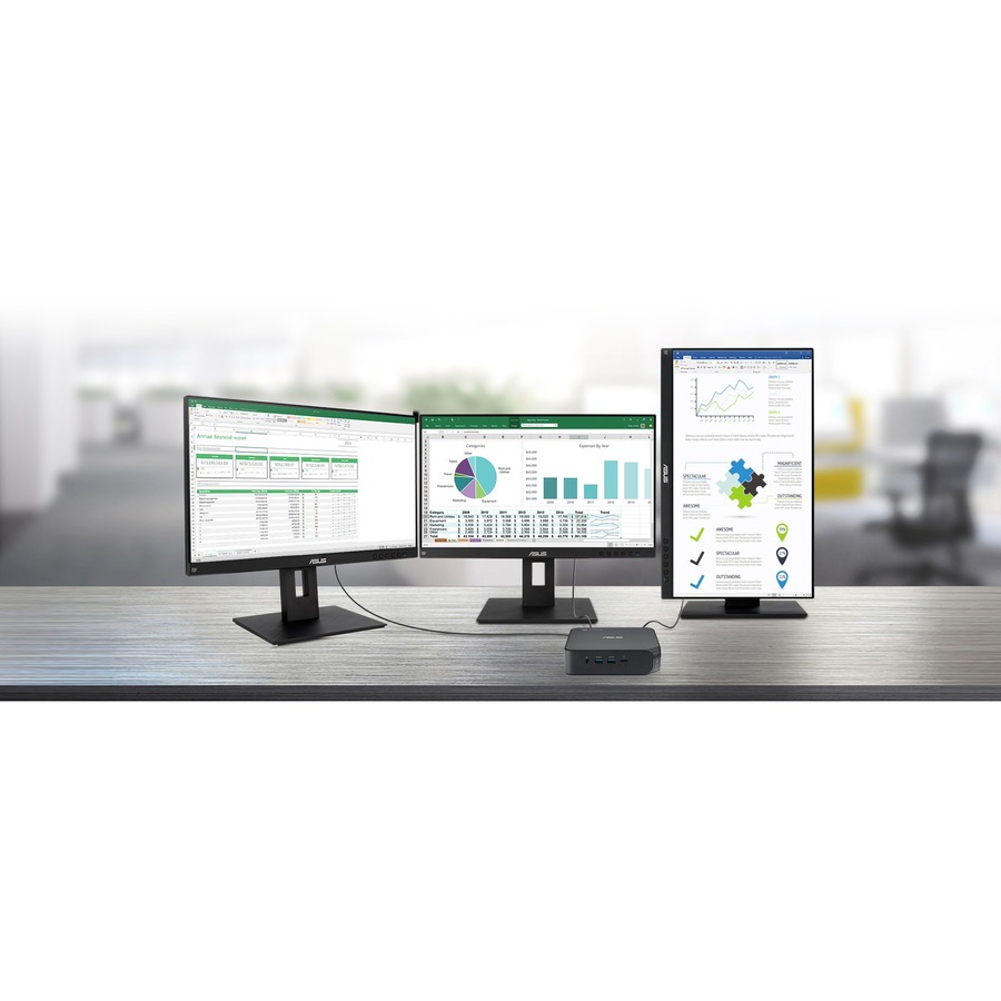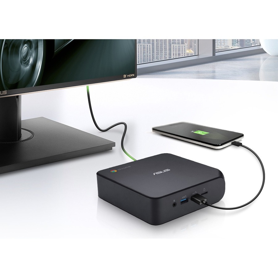 ASUS Chromebox 4 features a 10th Generation Intel® Core™ or Celeron® processor and DDR4-2666 memory for faster, smoother and more energy-efficient performance. It also supports up to three 4K displays and comes equipped with versatile USB-C® 3.2 Gen 1 and USB 3.2 Gen 2 Type-A ports for fast data transfers, and USB-C also supports power delivery and DisplayPort connections. Offering easy access to Android apps via Google Play, the device lets you enjoy your favorite apps with the power of a mini PC. For the added benefit of Chrome Enterprise, ASUS Chromebox Enterprise 4 option empowers businesses, IT administrators and remote employees with the tools they need for enhanced productivity and efficiency. ASUS and Chrome Enterprise Solutions ASUS Chromebox Enterprise devices combine the end-user benefits of Chromeboxes with the business capabilities of Chrome OS for IT to secure, orchestrate and power the cloud workforce, and for further empowering your enterprise.Secure and intelligent hardware solutions for working remote.Get started immediately out of the box with zero-touch enrollment. Choose the apps that suit your needs With a rich selection of Android apps available on Google Play, you can easily find great apps for productivity, communication, entertainment and more for getting the most out of your ASUS Chromebox 4 Extensive connectivity with power-delivery technology With support for USB Power Delivery, ASUS Chromebox 4 can charge a connected phone or accessory and can also receive power from a supported display or other device. This eliminates the need for a separate power adapter and makes it easier to keep your workspace tidy. Triple-display productivity with true 4K UHD visuals Integrated Intel® UHD Graphics on Chromebox 4 display videos and images in stunning 4K UHD resolution, and two HDMI ports and a USB-C® 3.2 Gen 1 port extend 4K UHD visuals to up to three displays for expanded screen size-allowing you to spread out documents, view mirrored content or extend a single browser across multiple displays for greater productivity. When the time comes to kick back and relax, you have plenty of screen with which to browse the web, view photos or watch videos in 4K UHD. Lightweight, space-saving design ASUS Chromebox 4 features a compact, space-saving design with chassis dimensions of 148.5 x 148.5 x 40 mm. Each device also features a newly designed lockable VESA mount that securely attaches to a wide range of surfaces. The VESA mount includes a screw-in rubber barrier that protects the surface of Chromebox 4 from everyday bumps and knocks. The VESA mount also allows you to attach the device to your display and turn it into your own customized all-in-one PC for a tidy, clutter-free workspace. |