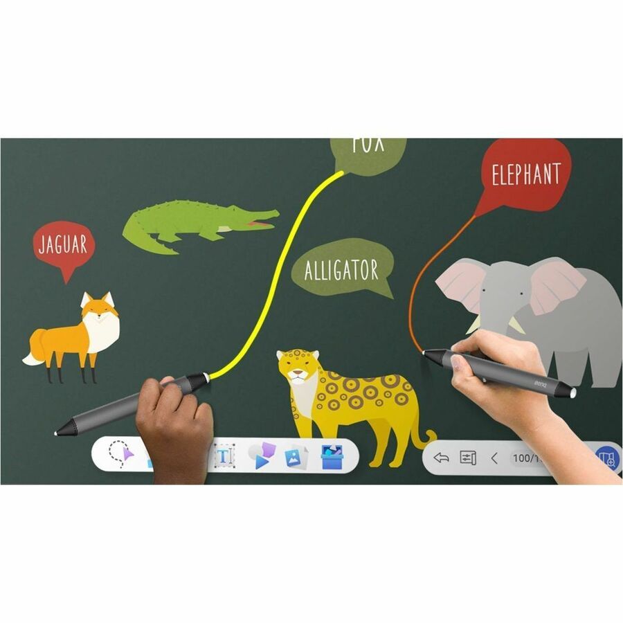 All-around protection The antimicrobial properties of the TPY24 pens matched with the germ-resistant screens of BenQ interactive displays create two layers of protection against touch-transmitted diseases. Whether you're using the pens or your fingers to write, BenQ's TÜV-tested formula actively works to prevent the spread of germs in classrooms. Intuitive collaborative writing The TPY24 pens work best with the dual-pen mode on EZWrite. Each tip is assigned a distinct color, letting teachers clearly identify which content belongs to which student. Ergonomic shape for easy use Each TPY24 pen has a curved triangular barrel designed to make them easier to grip. Solid and lightweight, they give students the natural feeling of writing on a whiteboard with a marker. No charging needed The TPY24 does not require external batteries or charging for teachers and students to start writing. This ensures smooth, uninterrupted whiteboarding even after a full day of classes. |