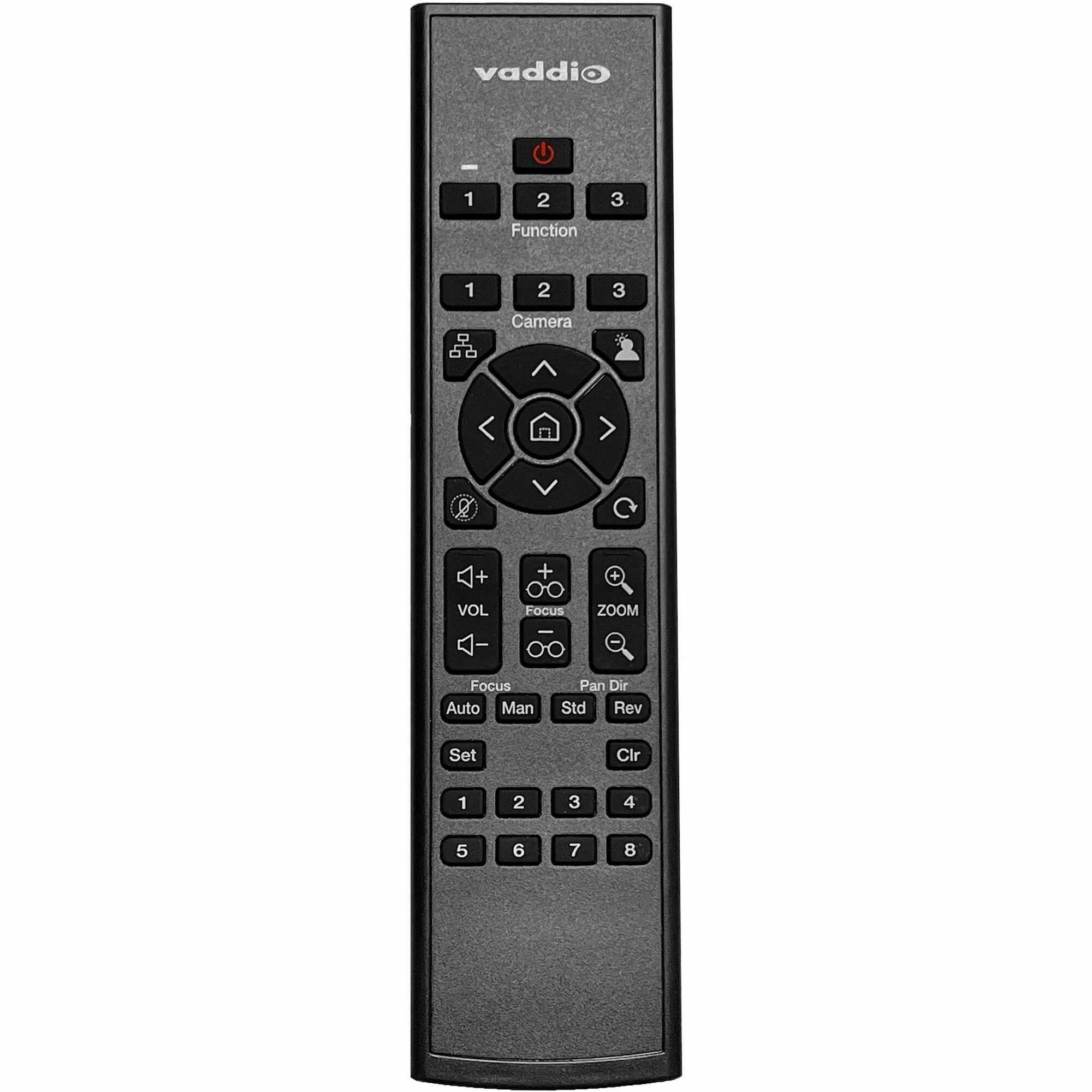 | Marketing Information | Replacement or additional remote control for Vaddio and Sony PTZ camera models controlled with infrared light (IR). Wirelessly control Vaddio and Sony PTZ cameras with the IR Remote Master. The remote offers functionality such as pan, tilt, zoom, preset and audio control. Provides the ability to choose between three separate IR channels for independent camera control when multiple cameras are co-located. For RF camera models. |