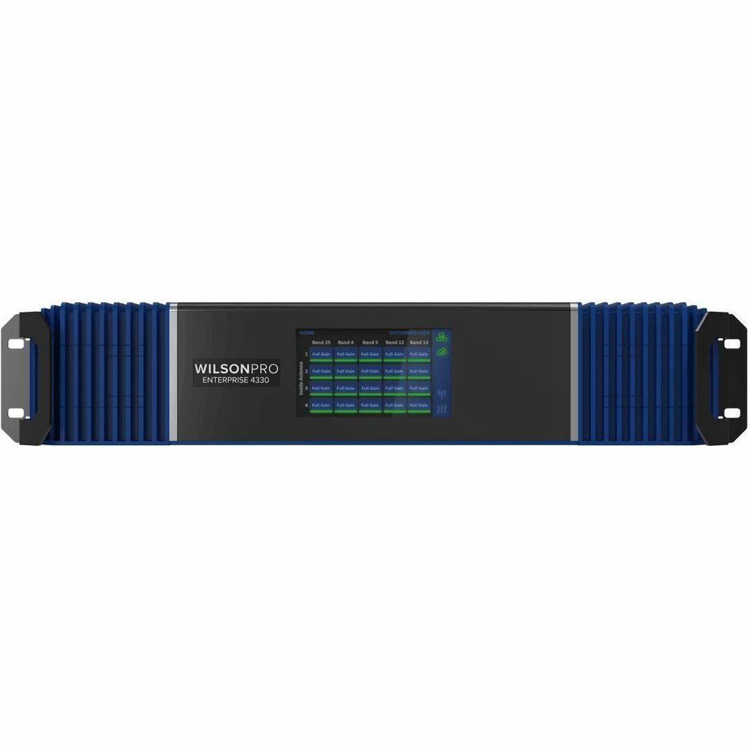 | Marketing Information | The Enterprise 4330 cell signal amplifier systems provides significantly enhanced 4G LTE and 5G coverage inside buildings where cell signals may not otherwise penetrate. Installation of an Enterprise 4330 cell signal amplifier system results in fewer dropped calls, improved voice quality, uninterrupted texts, and faster data speeds-along with better audio and video streaming. For installers and integrators, subscribing to the WilsonPro Cloud means you can sell your clients extended service plans, generating recurring revenue streams for your business. And for your clients, the WilsonPro Cloud provides ultra-high system reliability and guaranteed uptime. The Enterprise 4330 cell signal amplifier system now incorporates Wilson Electronics' channelization technology. Specific sub-blocks within a cell band, can be selected for amplification. This capability proves critical in situations in which a strong outside carrier signal is interfering on a frequency band. Filtering can also be essential in installations where only one specific carrier is required. The Enterprise 4330 also incorporates standard WilsonPro Enterprise features such as "split mode" (a.k.a "Multi-Tower Targeting"), XDR (eXtended Dynamic Range: never shuts down due to a strong signal), and an easy-to-use color LCD screen. Like all WilsonPro cell Signal amplifiers, the Enterprise 4330 cell signal amplifier systems are universal: they work for all cellular devices, all services, and all U.S. and Canada cell phone carriers, including smaller local and regional providers. |