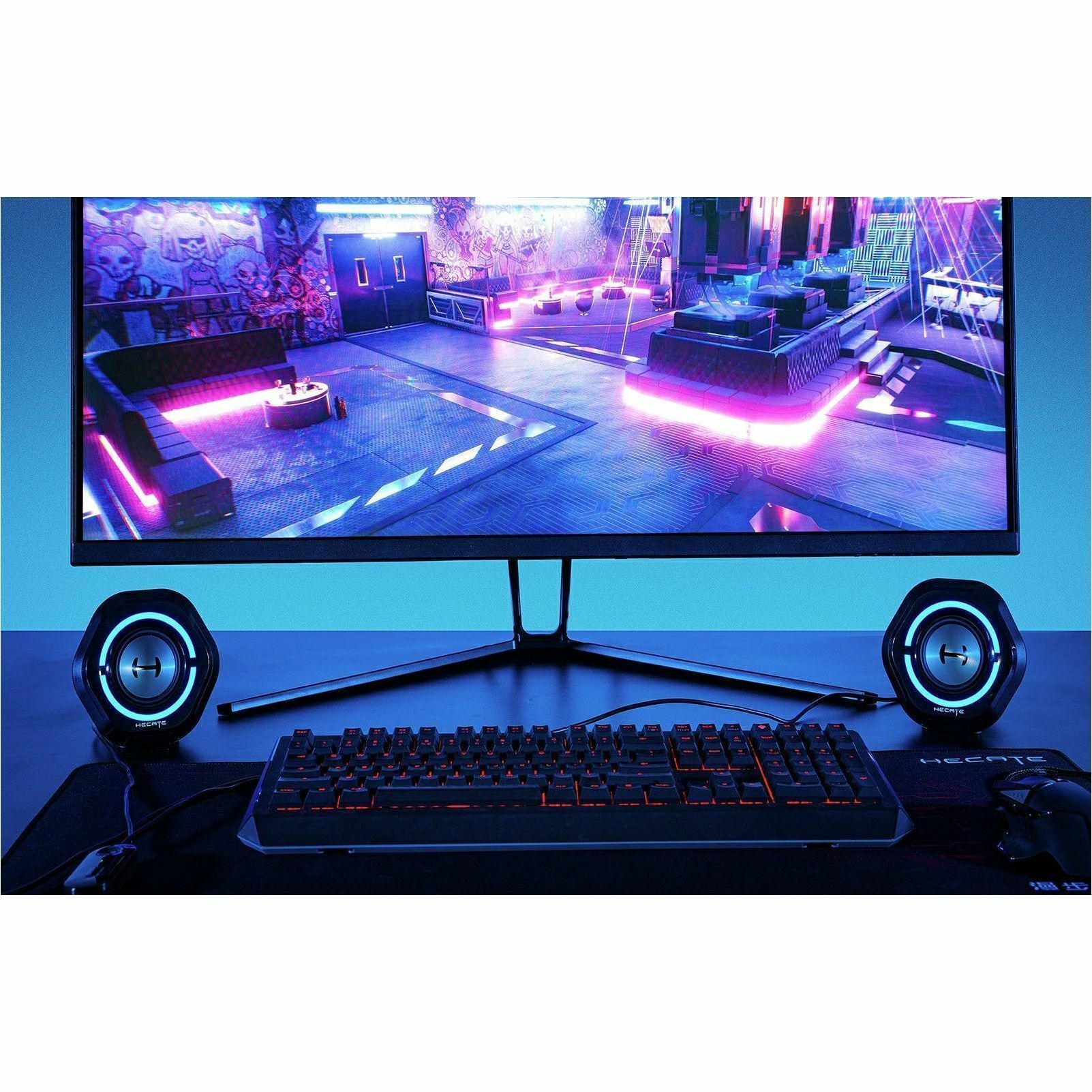 | Marketing Information | A New Technology Milestone A brainchild of futuristic design and excellent sound quality inheriting the HECATE's consistent design aesthetics and pursuit of sound quality. A 2.5-inch full frequency unit and an aluminum driver unit with 10W power is adopted to meet players' pursuit of product design, sound quality, and user experience. RGB Lightening With the one-button switch of 12 patterns of RGB ambient lighting effects and the "oxeye" design, the speakers look futuristic and cool. The compact design will not overpower your gaming setup. Experience a Real Battlefield The large sound-field makes your desktop a battlefield and creates an immersive gaming experience. Bluetooth 5.3 G1000 also supports Bluetooth phone connections for mobile gamers. USB Sound Adapter Link the speakers to the audio player with a USB cable, short press the button of Mode/Sound Effect to switch to USB Sound Adapter mode. The steady red light indicates a successful connection. |