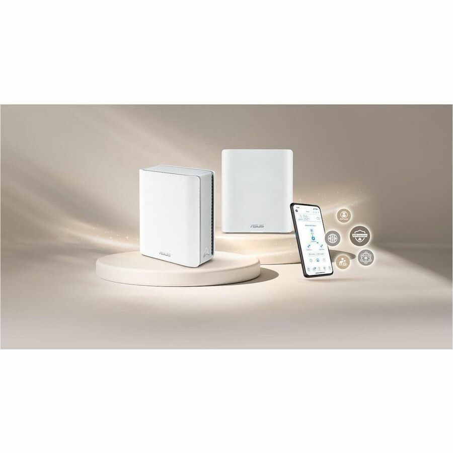 | Marketing Information | ASUS ZenWiFi BT6 | Worry-Free Smart Home Mesh The ASUS ZenWiFi series advances your ever-evolving smart home with worry-free WiFi. The ASUS ZenWiFi BT6 raises the bar for whole-home mesh with WiFi 7 and next-gen Smart AiMesh technology. It delivers blazing-fast tri-band speeds up to 9.4 Gbps and unleashes superior 6 GHz WiFi. Along with an ultra-high-speed 2.5-gigabit Ethernet port and a suite of advanced network and security technologies, this mesh WiFi system is ready for the future of your smart home network today. DESIGN | The Pinnacle of WiFi ASUS ZenWiFi BT6 embodies our unwavering commitment to developing incredible in-house WiFi and network technologies. Seamlessly connect to your family and friends within a worry-free connected experience. IEEE 802.11be | WiFi 7 Powering Premium Mesh The ZenWiFi BT6 boasts cutting-edge WiFi 7 technology. This superior tri-band mesh system unleashes the full potential of WiFi 7 with wired backhaul options. Enjoy a next-generation connected experience for home entertainment and cloud computing, including 8K streaming, HDR gaming, content creation and AI.