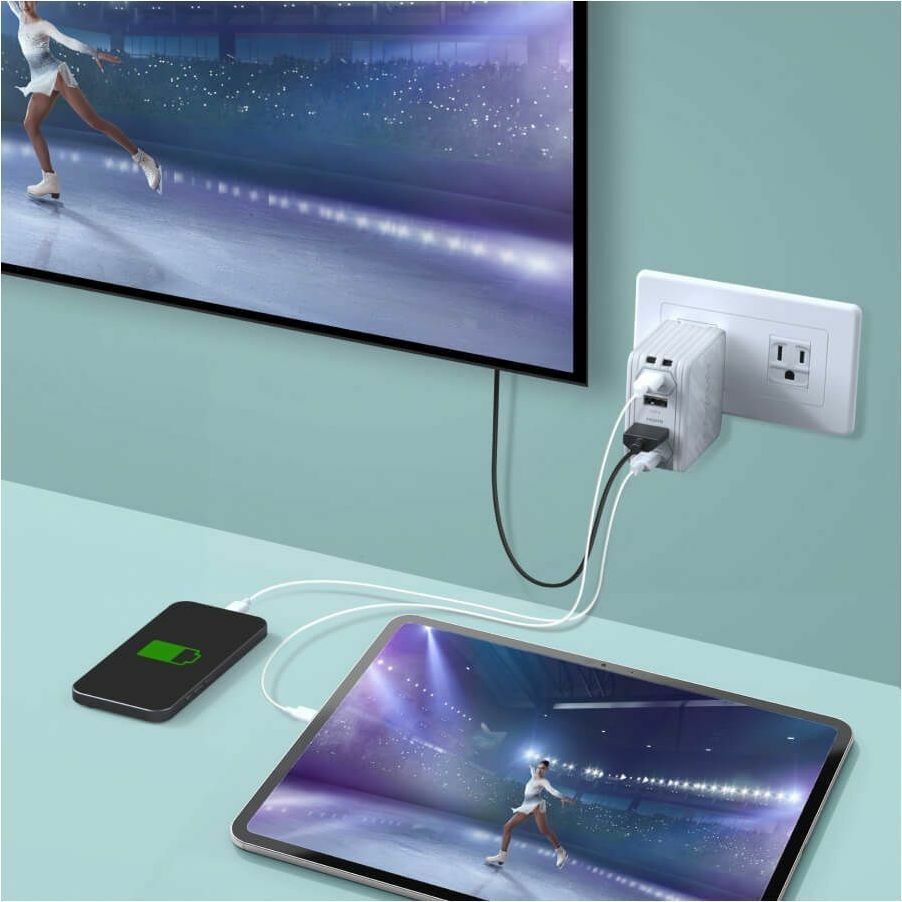 One Charger for All Your Devices No more carrying multiple chargers. The ELITE GO GC313Pro supports triple-device charging, making it an ideal companion for travel. Charge your smartphone, tablet, and other devices simultaneously, reducing clutter and ensuring you stay fully powered wherever you go. Bigger Screen, Better Performance Expand your viewing experience by connecting your device to a larger screen. The ELITE GO GC313Pro enables seamless video and data transfer, ensuring you're always ready for presentations, gaming, or enjoying media on a bigger display. Safer, Faster and Smaller Our 100W GaN charger ensures rapid and efficient power delivery provides a safe and stable charging experience, reducing charging time significantly with a smaller and lighter design. |