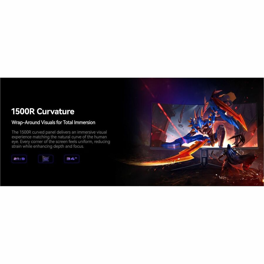KOORUI G3441XC 34" Class WQHD Curved Screen Gaming LCD Monitor - 21:9 - Black