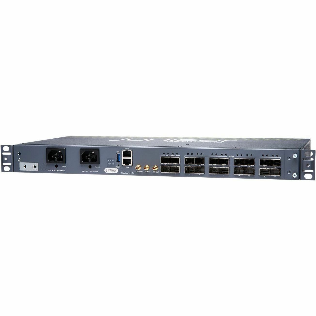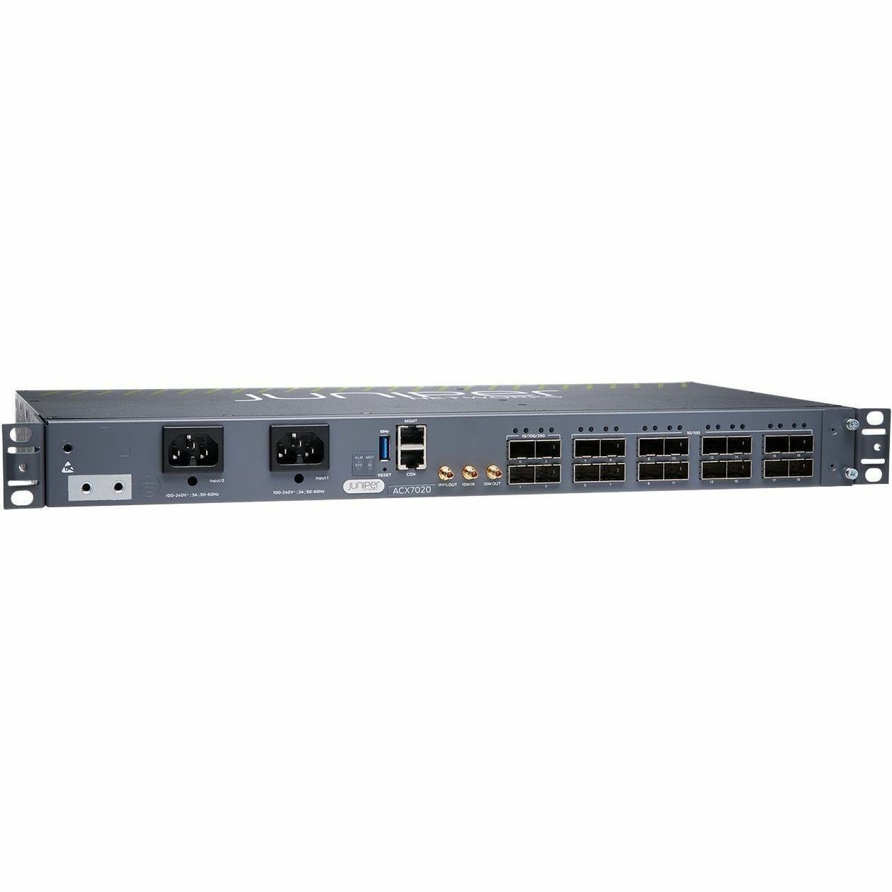 | Marketing Information | The Juniper Networks® ACX7000 family of Cloud Metro routers is designed to help operators achieve their capital, operational, and user experience goals. Part of the Juniper Networks ACX7000 family of routers, the ACX7020 delivers exceptional TCO and investment protection. It also supports Juniper® Cloud Metro for 5G, Internet of Things (IoT), and cloud applications. This router is ideal for service provider, enterprise, and cable and residential use cases requiring an industrial-rated, highly flexible, compact, multiservice ACX7000 Family Overview ACX7000 routers are purpose-built for the IP service fabric underlay of a Juniper Cloud Metro. They leverage the industry's fastest chipset, provide a unique balance of system design, and set new benchmarks for sustainable, high-performance platforms. Managed by Junos® OS Evolved and Juniper Paragon™ Automation portfolio, ACX7000 routers are embedded with Paragon Active Assurance and with Zero Trust security built in, enabling operators to deliver highly differentiated customer experiences. They are available in environmentally industrial-rated, fixed, fixed plus modular, and fully modular designs. These energy- and footprint-efficient multiservice routers support high-precision timing technologies and are engineered for service provider, enterprise, residential (including PON with the Juniper Unified PON Solution), IoT, and 4G/5G mobile applications. Individually, ACX7000 platforms bring leading-edge performance, scale, and capability to any deployment. Building a comprehensive Juniper Cloud Metro architecture consisting of multiple ACX7000 family platforms lets you realize a new dimension of end-to-end operational capability, performance, and simplicity. Forming the foundation of an IP service fabric underlay, the ACX7000 family shares innovative features that elevate operations and enable the core characteristics of a Cloud Metro ACX7020, from the ACX7000 family, is a compact, fixed, 1U (23.5 cm deep), high-performance multiservice router. Designed for Cloud Metro deployments in industrial temperature environments, it incorporates integrated fans (N+1 redundancy) for side-to-side airflow. It comes with 2x fixed AC or dual input DC power supplies. Its cost-effective and efficient thermal design, which includes optional conformal coating, enables the usage of high-power SFP28 and SFP+ transceivers on all supporting ports. It incorporates precision timing capabilities, including advanced Class C timing for low-latency 5G services and EMI/RFI shield with the optional conformal coating for best-in-class network experience. It supports next-generation protocols, including segment routing, SRv6, MPLS, and Ethernet VPN (EVPN), as well as any overlay, underlay, or service. The AXC7020 delivers service-assured network slicing, network intelligence, and Juniper Paragon Automation for network efficiency and operational simplicity. ACX7020 is an industrial-rated (I-Temp) multiservice router. Next generation silicon delivers 100 Gbps of throughput, a comprehensive feature set, and the scale needed to support today and tomorrow's performance and bandwidth requirements. The ACX7020 router's fixed ports include four multi-rate (SFP28) ports (each configurable as 1GbE, 10GbE, and 25GbE) and 16 multirate (SFP+) ports (each configurable as 1GbE or 10GbE) enabling operators to perform today's most common upgrades on a port-byport basis. The four SFP28 ports can be used as 25GbE uplinks are available to support scale. |