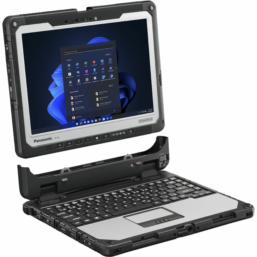 | Marketing Information | 12" TABLET EASILY CONVERTS TO A LAPTOP WITH OPTIONAL KEYBOARD. The Panasonic TOUGHBOOK® 33 offers unparalleled flexibility in even the most demanding and extreme environments and is the world's first fully rugged 2-in-1 PC with a 3:2 screen. Inspired by the increasing demands of mobile professionals, the TOUGHBOOK 33 delivers rugged mobility in a highly customizable package that also includes over 14 years of backward compatibility. It has an optional i7-1370P processor that delivers 14 cores of computing power. A wide range of integrated options such as serial port, barcode, fingerprint, insertable, contactless Smart Card readers, choice of 4G or 5G modems, assure TOUGHBOOK 33 can be customized to meet the unique needs of a diverse customer base. |