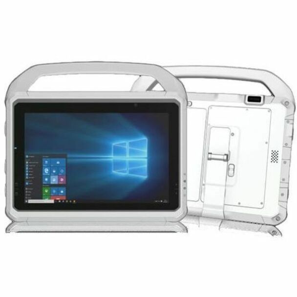 10" Tablet featuring Intel Quad-Core 13th Gen Processor, medical grade antimicrobial enclosure, ABS/Magnesium/Aluminum chassis, hot-swappable battery, carrying handle and built-in kickstand. Other optional features include Front and Rear cameras, 1D/2D Barcode Scanner and Detachable Slim Keyboard.