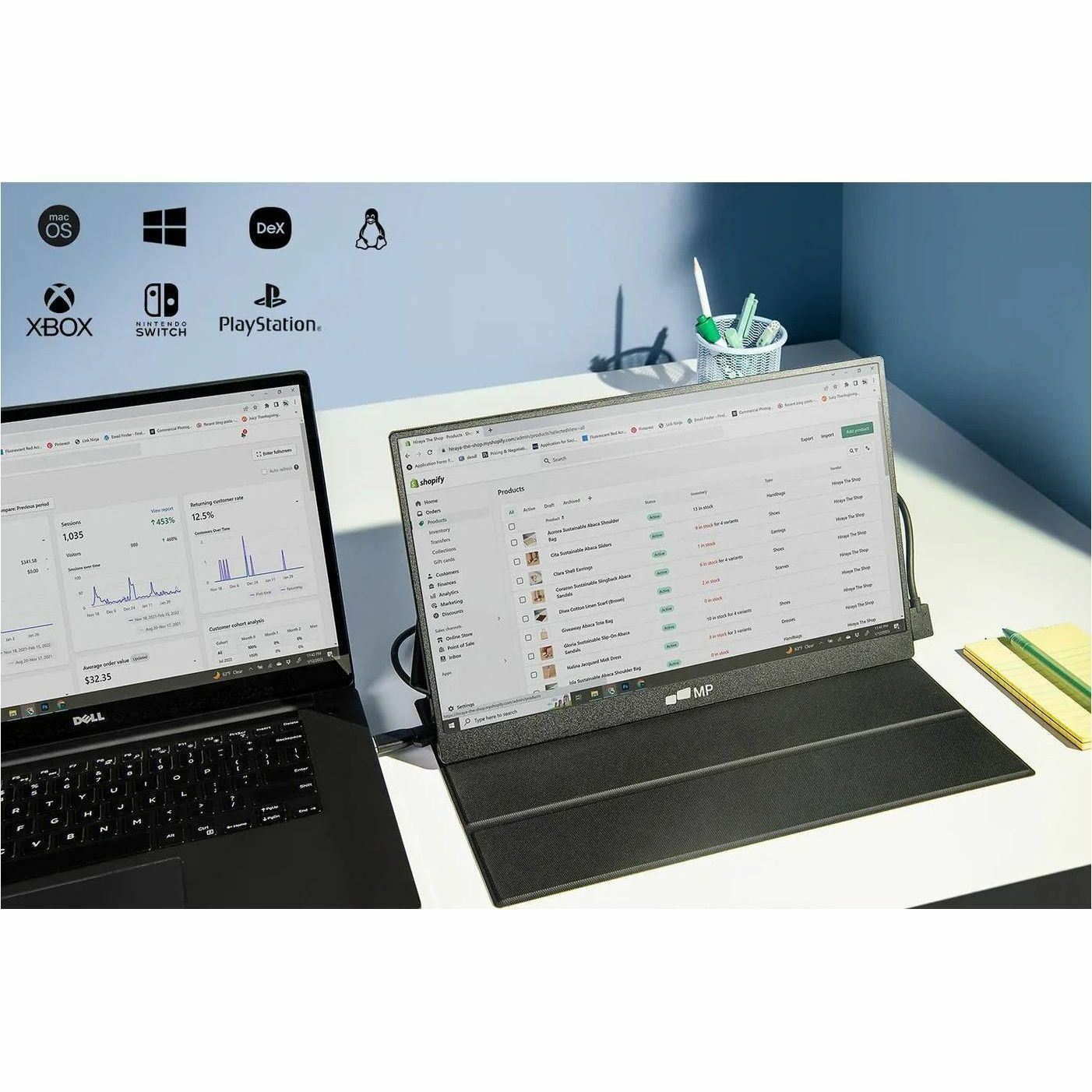| Marketing Information | Mobile Pixels Fold portable monitor with high-definition IPS screen renders accurate and bright color, extending your screen or playing games on business trip, travel, or home entertainment. It supports plug and play with DP-enabled USB-C devices, no driver installation is required. The Fold portable external monitor comes with a durable magnetic case that works as a kickstand as well as a protective sleeve. The scratchproof smart cover is made of durable PU leather and can outlast the life of the device. 2.5K Resolution | High-Detail Immersion. Elevate your viewing experience with superior image quality and detail in 2.5K resolution (2560 × 1600 pixels). Enhanced Durability | Durable Magnetic Cover. Comes with a specially-designed magnetic cover, which can protect your screen as a cover when putting into your backpack on the go. It can stability support your monitor for excellent protection. The magnetic cover base has two grooves, which can prevent sliding down and provide two viewing angles for your comfort. Extended Your Workspace to a Second Display. Mobile Pixels Fold portable monitor serves as a second screen to your laptop, you can keep multiple applications open side by side, have more space for editing documents or photos, and easily switch between tasks, resulting in a more efficient workflow. Additionally, the extended monitor is also great for entertainment purposes, providing a larger and more immersive viewing experience for movies, TV shows, and gaming. Rich Connectivity | USB-C and HDMI Connectivity. Featuring USB-C and HDMI connectivity, the Fold lets you display content from a wide variety of devices, including smartphones, laptops, game consoles, and more. providing a more expansive view for work or play. One cable solution with USB-C The Fold only requires a single USB-C connection for both power and video transmission from your host device. It is ready to use without any additional drivers or software. Using USB-C to C cable with HDMI cable In addition to dual USB-C ports, this monitor also features HDMI for plug-and-play connectivity. Built-in Dual Speakers | Immersive Audiovisuals for Work and Play. This monitor built-in dual 1W stereo speakers deliver good sound with crystal-clear audio quality, especially when listening music, watching movies and playing games. Also, you can use your headphones via 3.5mm audio jack. Slim and Stylish Design | Effortless Mobility. Weighing just 1.89 pounds for Fold 2.5K, 1.65 pounds for Fold 1080p, and featuring an ultrathin profile that tapers to a mere 8.8 mm (Fold 2.5K) and 6 mm (Fold 1080p) at its edges, Fold slips easily into any travel bag, , so you can easily take it on location. Wide Compatibility | Pairs Perfectly with Your Devices. This monitor is compatible for laptops(macOS/ Windows/ Linux), PCs, Phones, PlayStation, XBOX, Nintendo Switch. No driver needed! |