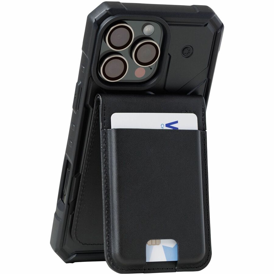 The Metropolis Wallet is built for the now - bold design, everyday utility, and zero bulk. It's compact, clean, and tough where it counts. Made with rugged, high-quality PU vegan leather inlay, it's got the look and feel of luxury without the waste. A durable hinge keeps things locked in tight. Slide in up to 5 cards and bills - they stay hidden and secure, even when you flip the wallet into kickstand mode. Whether you're binging shows, video calling, or scrolling the feed, the multi-angle stand shifts effortlessly between vertical and horizontal views. A 2.5mm ultra-strong magnet ensures a firm attachment to your case for added portability and convenience. No bulk. No nonsense. Just clean lines, tough materials, and modern design that moves with you.