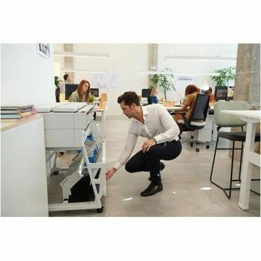 | Marketing Information | MOST EFFICIENT-Save time, get through more jobs Save time with the most efficient A4-A0experience. Collect jobs quickly and simply with the 40-page flat stacker.Seamlessly print A4 jobs with integrated input and output trays. And simplify scan and copy workflows with one-click shortcuts. CONNECTED-Secure and seamless collaboration Experience secure and seamless collaboration. Print in fewer steps with HP Click. Protect against cyber threats with HP Wolf Pro Security. Print remotely with HP app.And share with colleagues with the easy-to-use front-loading scanner. GO BEYOND-Meet office and environmental needs Go beyond and advance your environmental goals with a printer made with recycled plastics and recyclable supplies. This robust, compact plotter is designed to last while also helping to reduce energy and ink waste. |