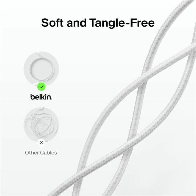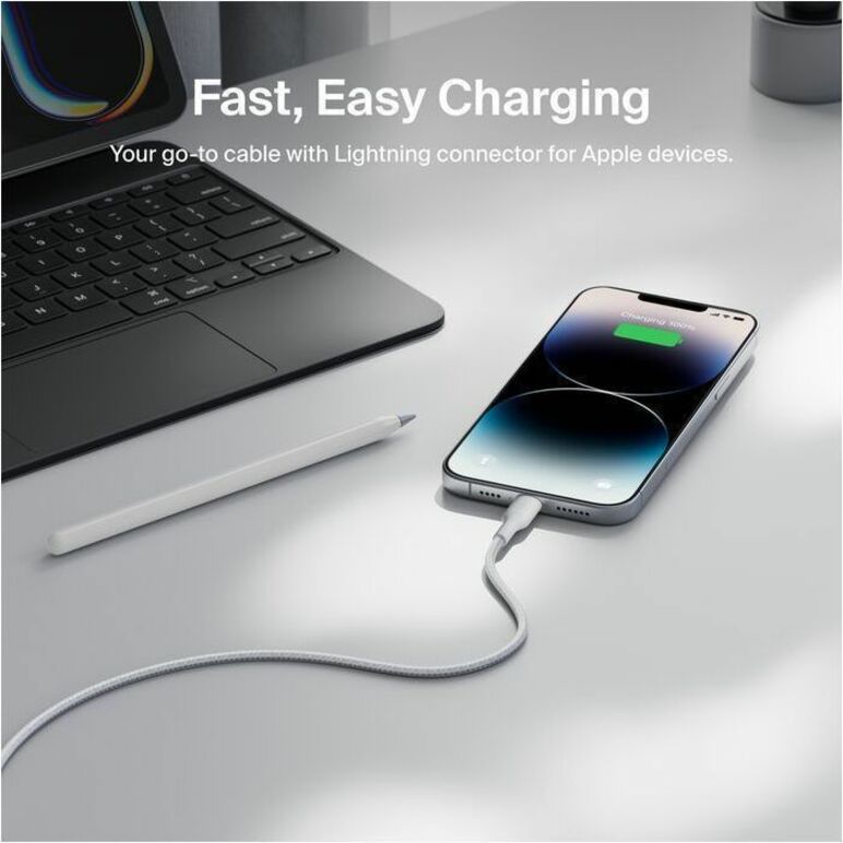 Belkin Braided USB-A Cable with Lightning Connector, 6.6ft/2m, White