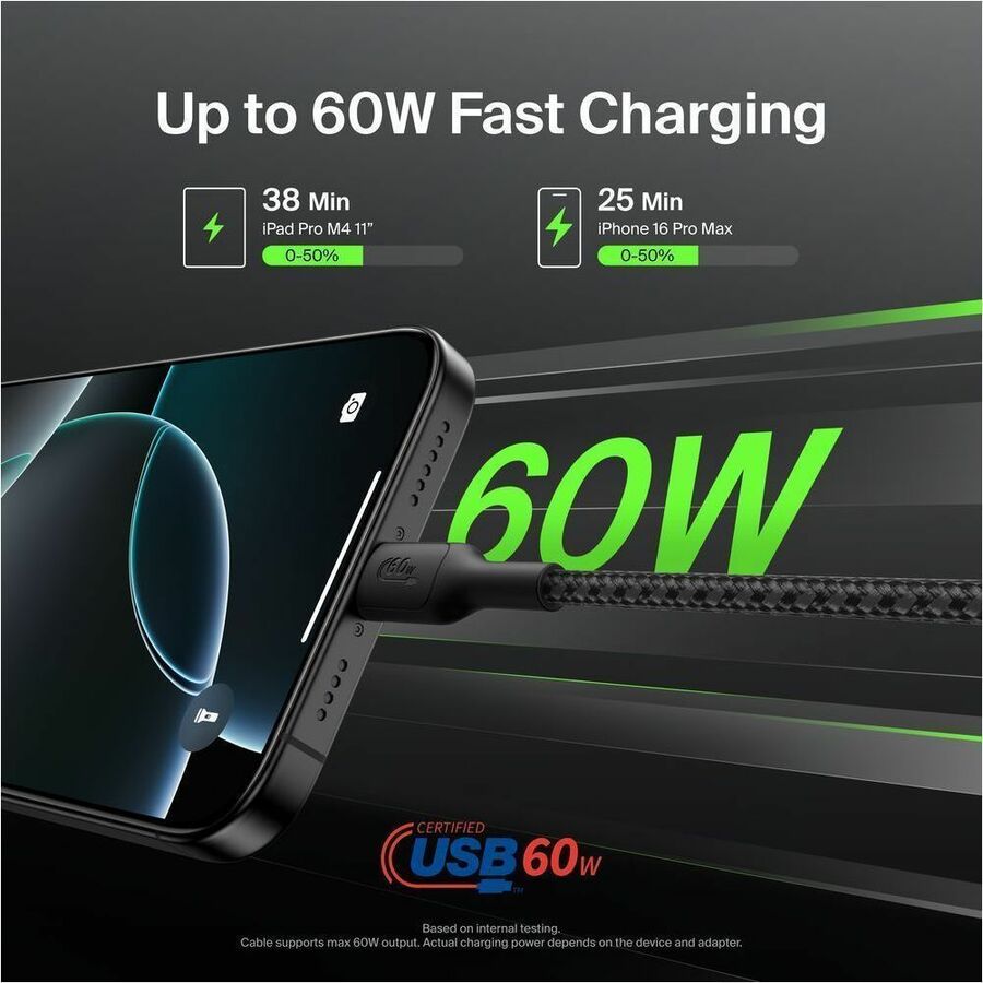 Belkin Braided USB-C to USB-C Cable 60W, 3.3ft/1m, Black